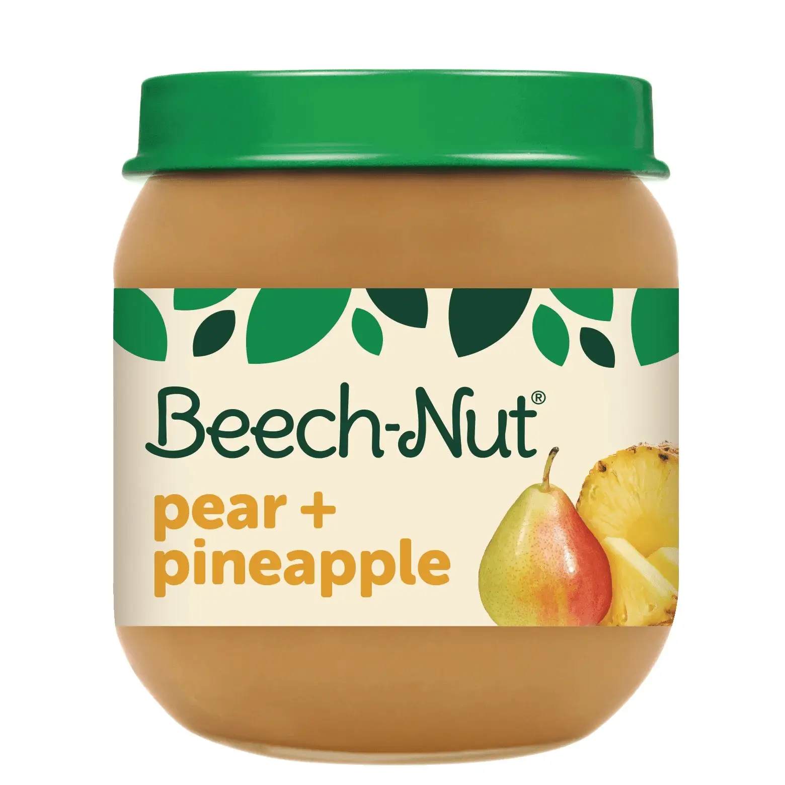 - Beech-Nut’s deliciously pureed pear & pineapple for baby with smooth texture