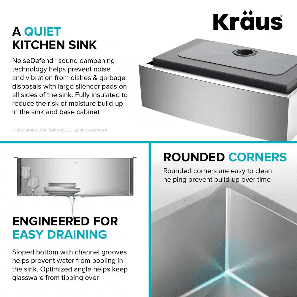 - Sink for kitchen w/ rounded corners and NoiseDefend soundproofing