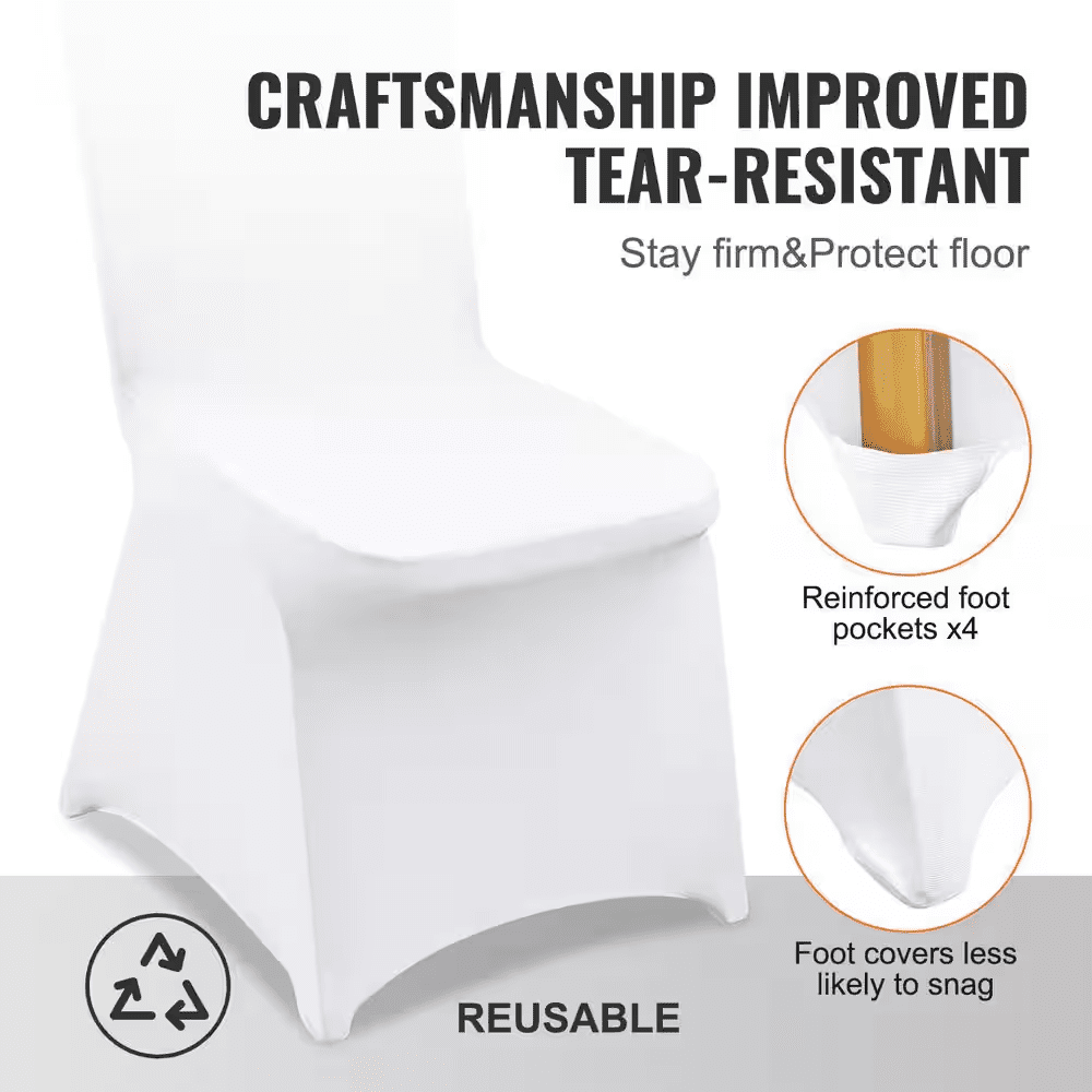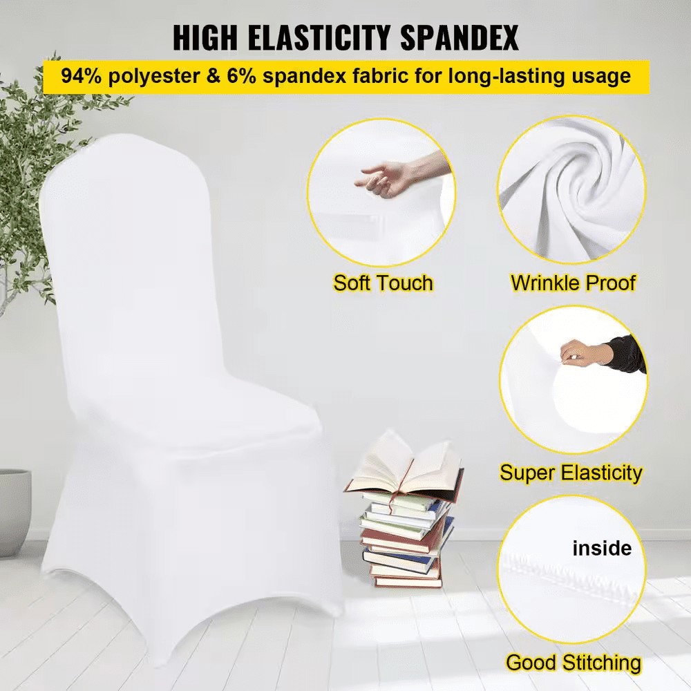 Spandex Chair Covers. High-quality chair covers, made from superior fabric with elegant designs, not only unify the appearance of chairs but also transform your old chairs into stunning wedding reception seats. These covers are ideal for weddings, holidays, banquets, parties, celebrations, and more.