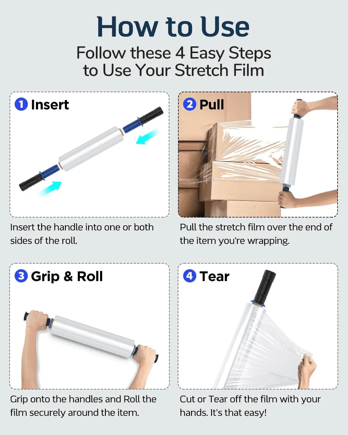 - ✅【COST-EFFECTIVE SOLUTION】NOTICE: This is Replacement Set only contains Stretch Wrap Roll. Better Work with handles!