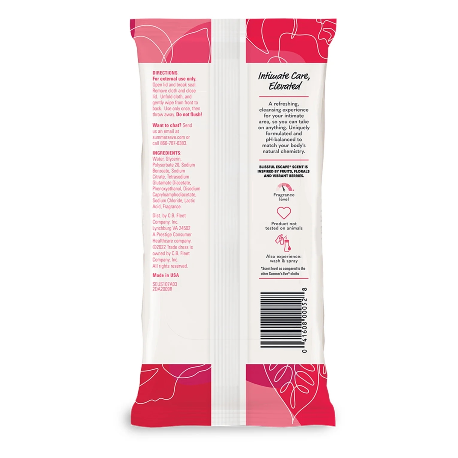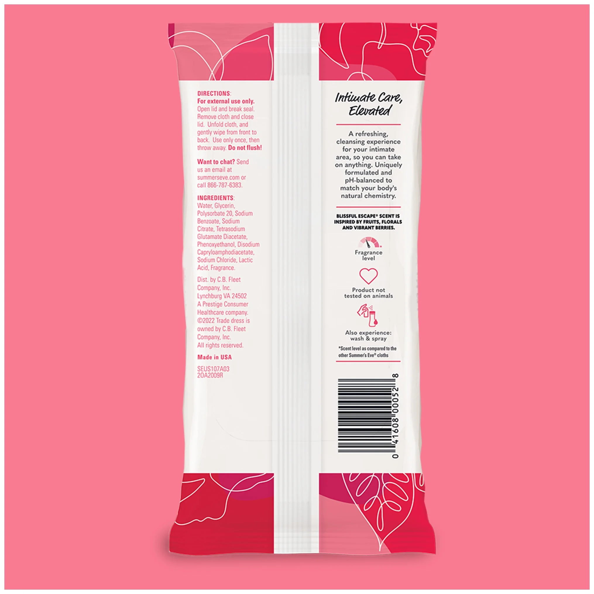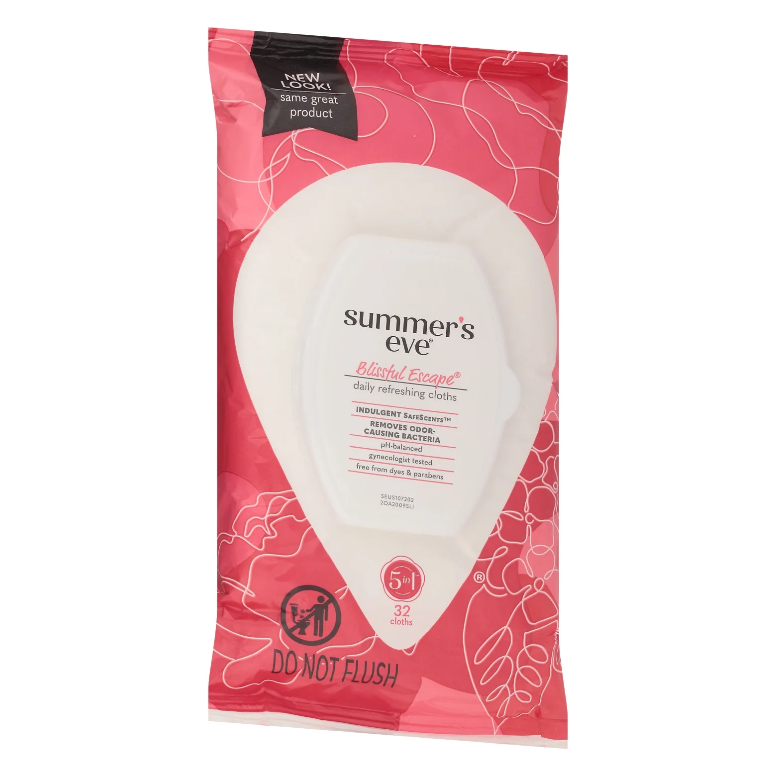- Contains 1 softpack of Summer’s Eve Blissful Escape Daily Refreshing Feminine Wipes, 32 count