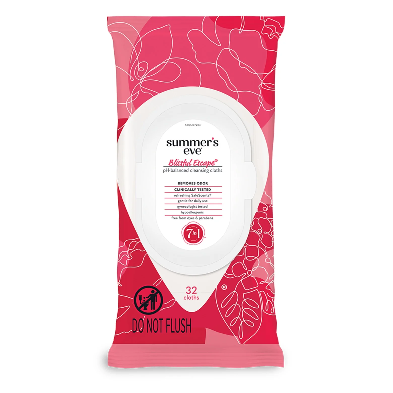 - Summer’s Eve Blissful Escape Daily Refreshing Feminine Wipes removes odor-causing bacteria