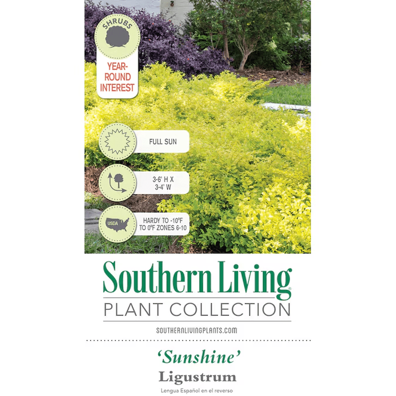 The Sunshine Ligustrum, brought to you by the Southern Living Plant Collection, is a standout choice for those looking to brighten up their landscape with its stunning golden-yellow foliage. This evergreen shrub can grow between 3 to 6 feet in height and 3 to 4 feet in width when left natural, but it also takes well to pruning, allowing you to shape it as desired. Notably, this Ligustrum variety is sterile, so you won’t have to worry about unwanted blooms or spread in your garden. Ideal for a variety of uses, the Sunshine Ligustrum works wonderfully as an accent piece, in containers, as part of a hedge, or in mass plantings. Its small leaves also make it a perfect candidate for crafting into topiary shapes, adding a unique touch to your outdoor space. Hardy in USDA Zones 6 through 10, this shrub is not too particular about soil, thriving in average garden soil with good drainage. To ensure the Sunshine Ligustrum thrives, water it 2-3 times per week during its first growing season and fertilize yearly with a slow-release balanced fertilizer. This care will keep your Ligustrum looking vibrant and healthy.