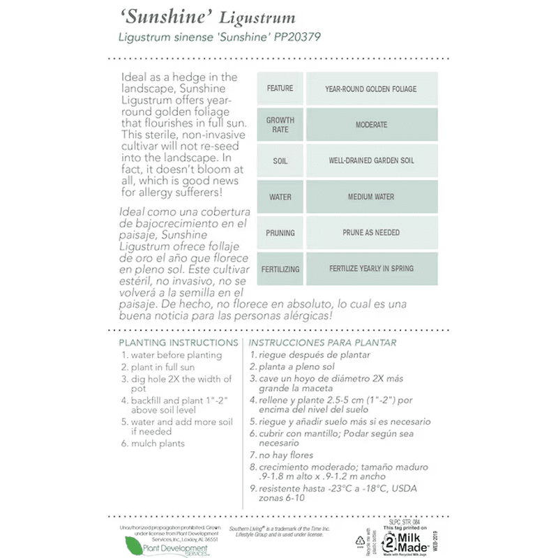 - Sunshine Ligustrum boasts vibrant, year-round golden-yellow foliage, ideal for adding a splash of color to any landscape or garden setting.
