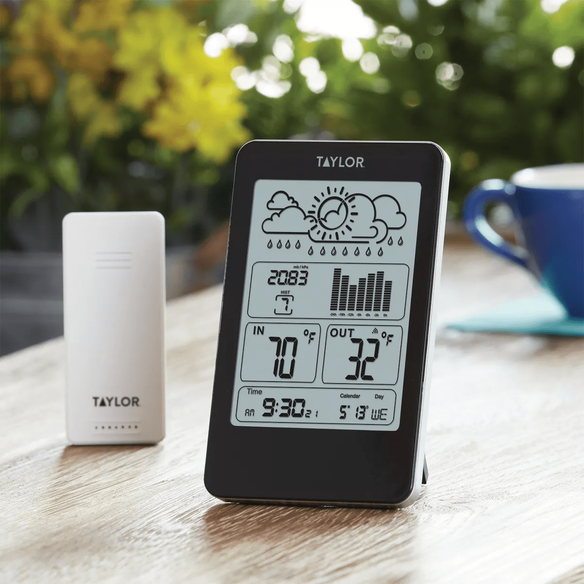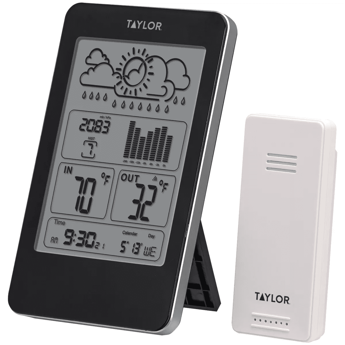 Watch the temperature and the barometric pressure with ease. The Indoor/Outdoor Digital Thermometer with Barometer is chock full of the features you need to track the weather. And from a trusted name like Taylor, you know that the information will be as accurate as possible._