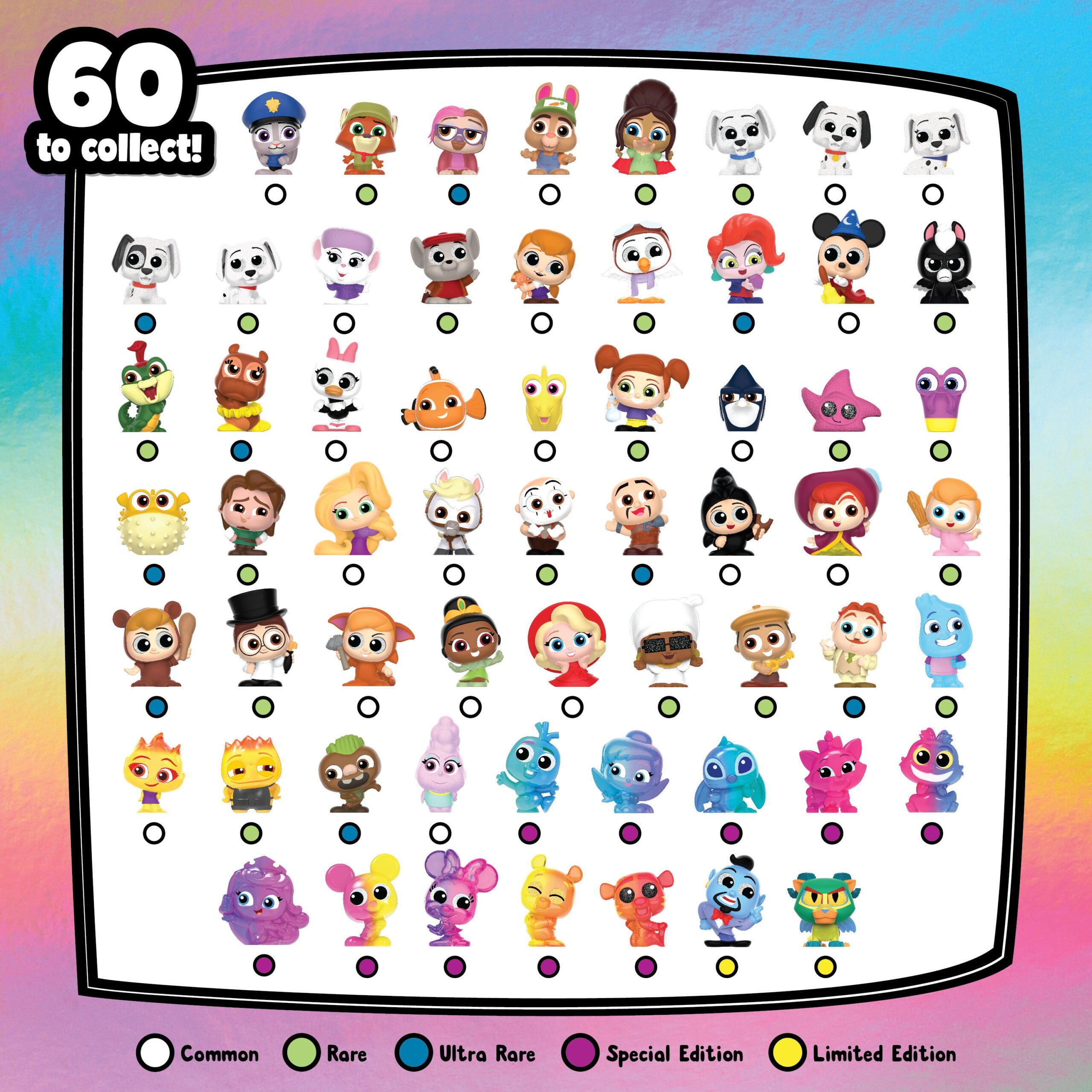 - Special Edition Figures: Find flocked figures from Disney’s 101 Dalmatians and pearlized translucent figures from Disney and Pixar’s Elemental.