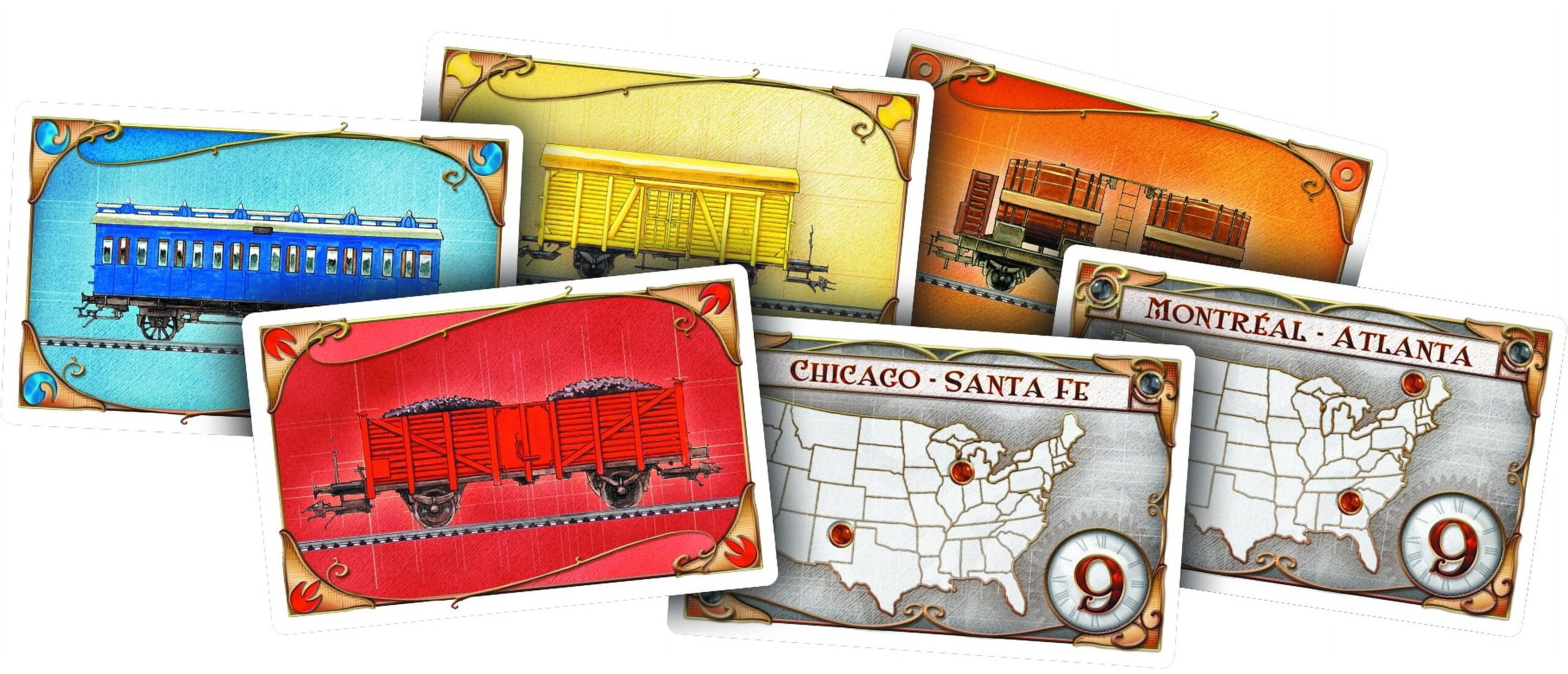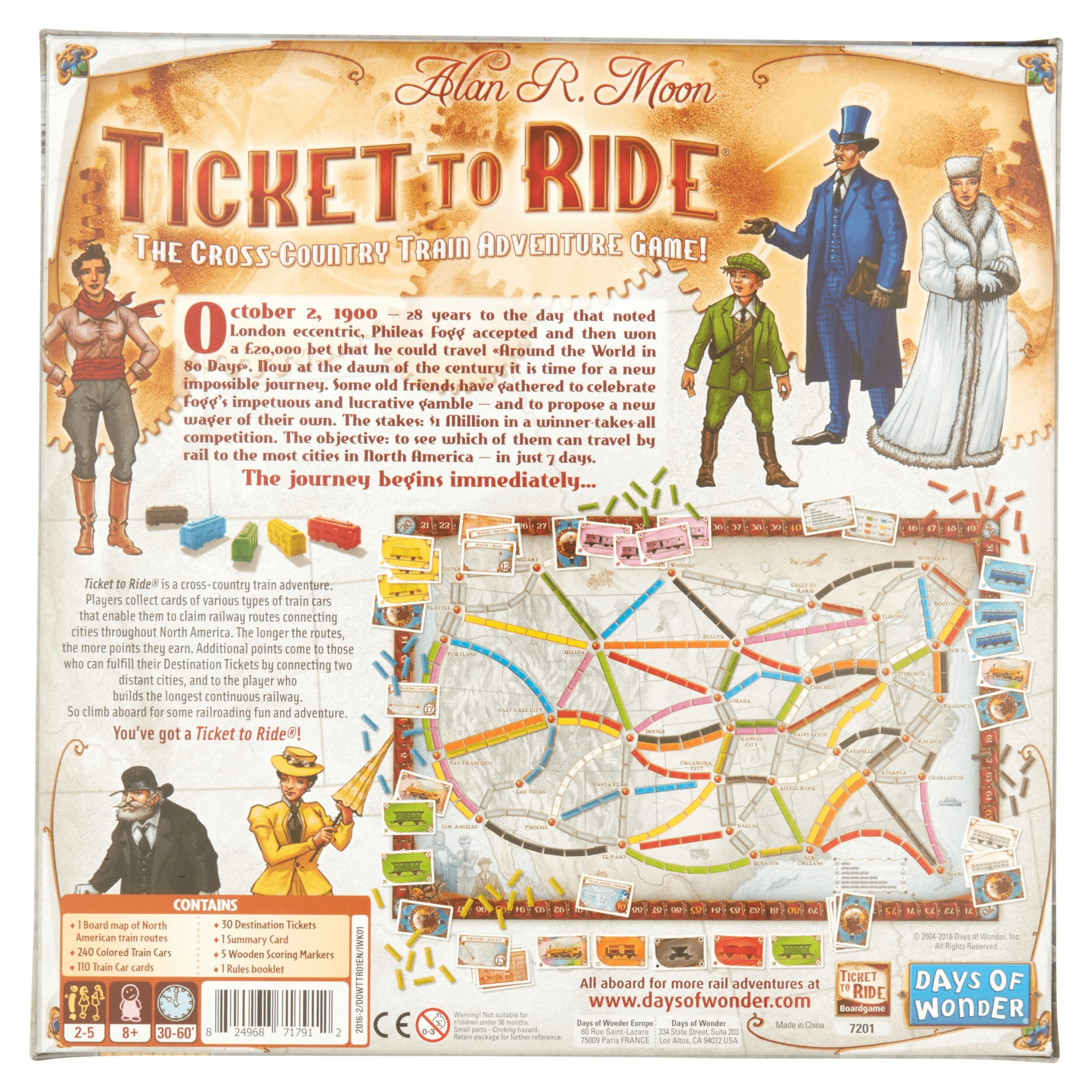 Style:Ticket to Ride Ticket to Ride is an award winning, cross-country trainadventure game. Players collect train cards that enable them to claim railwayroutes connecting cities throughout North America. The longer the routes, themore points they earn. Additional points come to those who can fulfill theirDestination Tickets by connecting two distant cities, and to the player whobuilds the longest continuous railway. The official Alexa skill takes playerson a guided experience from setup to the end of the game and features uniquesound effects and music. No rules are needed after saying Alexa, launchTicket to Ride. The skill also allows a person to play against Alexa! Ages 8 and older. Comes with: 1Board map of North American train routes, 240 Colored Train Cars, 110 TrainCar cards, 30 Destination Tickets, 5 Wooden Scoring Markers, 1 Days of WonderOnline access number, and a Rules booklet.