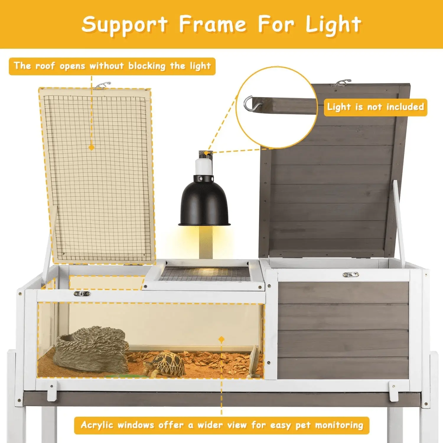 - 【Detachable Legs】Our tortoise habitat features detachable legs, allowing you to remove them as needed or place the cage directly on a table or the floor. In line with tortoise enclosure, this animal cage provides ample sunlight and a comfortable resting area.
