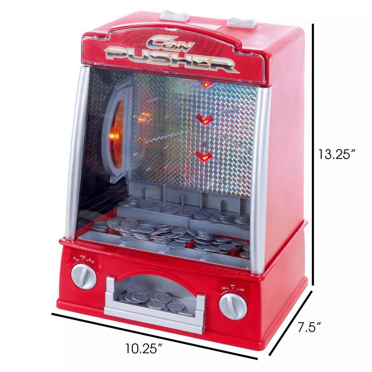 - CLASSIC SKILL GAME- This coin pusher will bring the magic of old school arcades to your home This classic game of skill and chance is fun for the whole family The coin slots move back and forth for added challenge