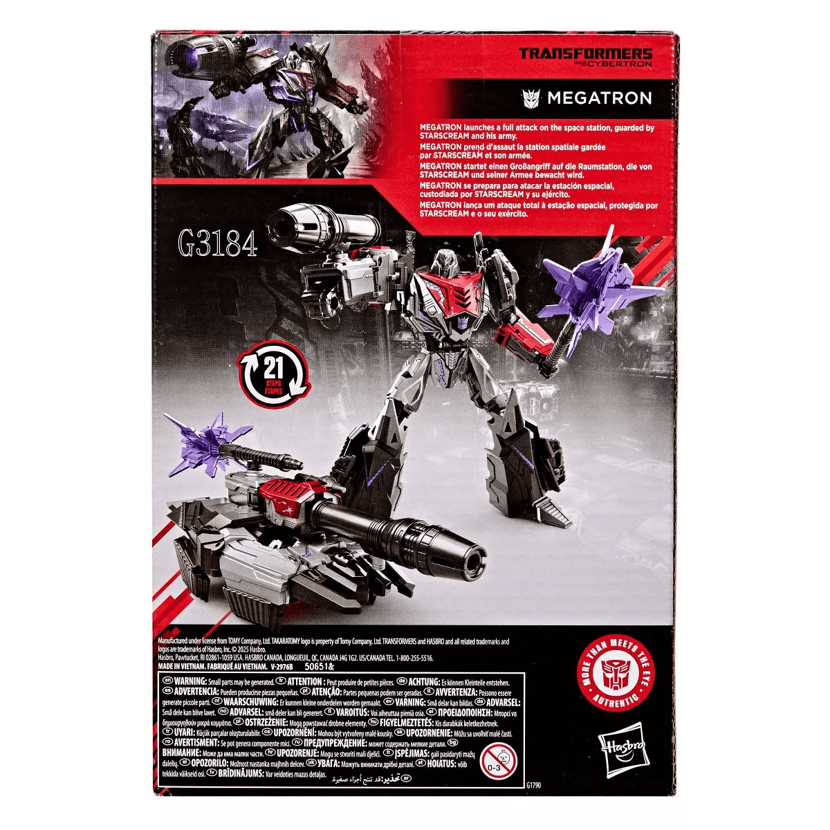 - WAR FOR CYBERTRON MEGATRON: This Transformers Studio Series Megatron figure features deco and details inspired by the gritty setting of the video game—complete with scuffs, scrapes, and battle scars