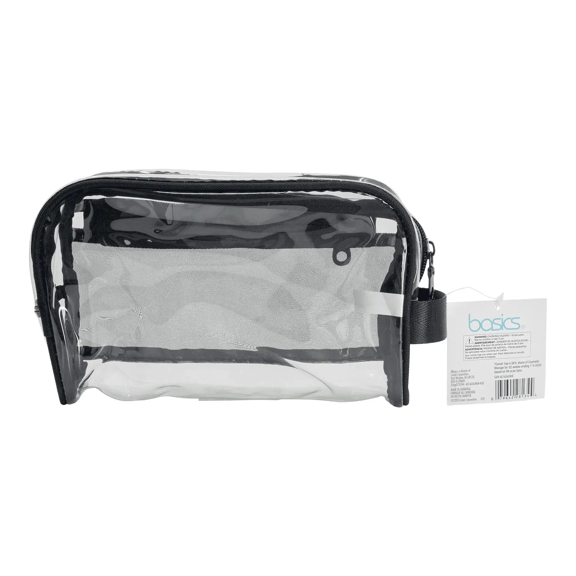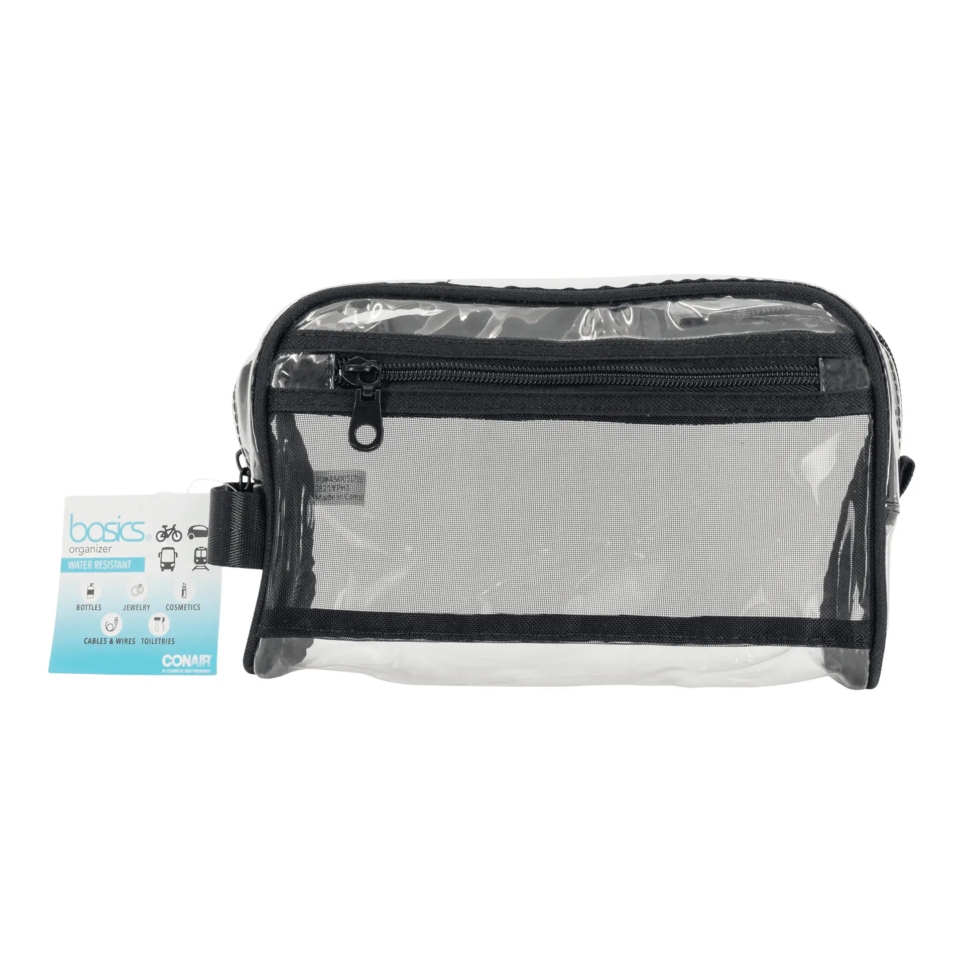 Clear and lightweight, this organizer has a spacious zippered compartment to keep all your essentials organized and accessible. Extra side mesh zip pocket is great to use for holding smaller items. The coil zipper secures this versatile organizer, and the sturdy handle makes it easy to carry. Great for the gym, the office, or at home.