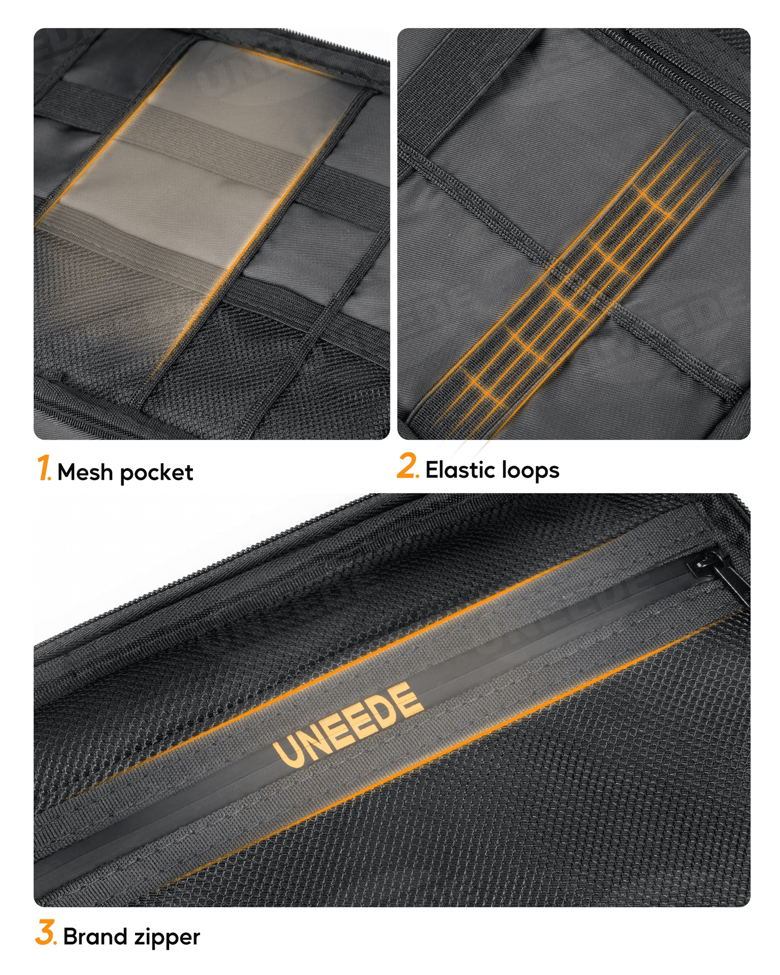 - 【Flexible Storage】 In order to enhance the efficiency of use, we have added a number of convenient pockets on the surface of the tech bag, which makes it easier to access frequently used items quickly and adopts a hidden design, which is aesthetically pleasing and increases safety at the same time. This thoughtful design only increases the flexibility of storage.