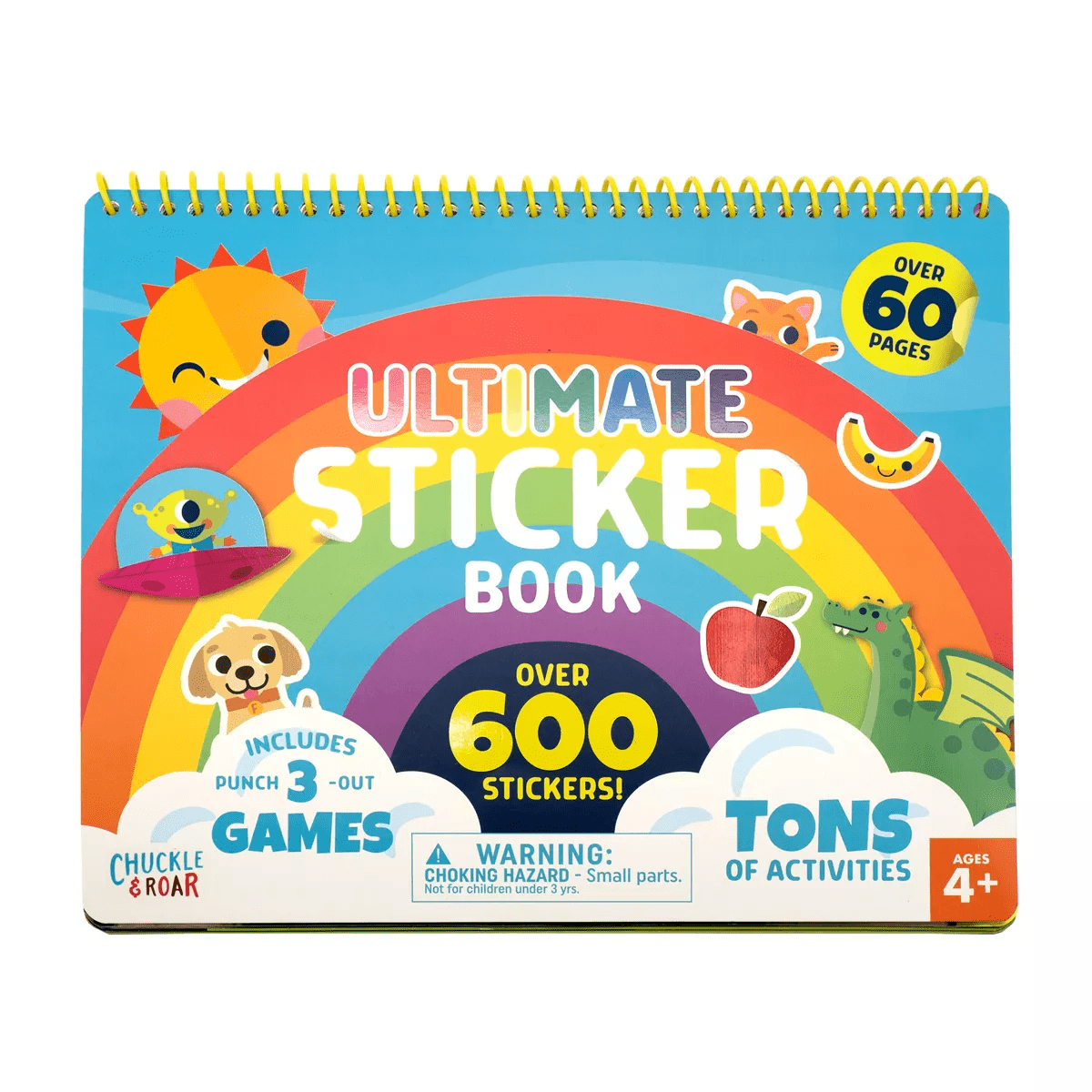 The Ultimate Sticker Book includes over 600 fun stickers and 60 full-color activity book pages. Your little ones can practice counting, spelling, spatial placement and decorating through interactive mazes, puzzles, crosswords, fill in the blanks, drawing, coloring, connect the dots and so much more. As a bonus, the last few pages at the end of the book include 3 punch-out games – Dominoes, 123 Matching and A-Z Matching.