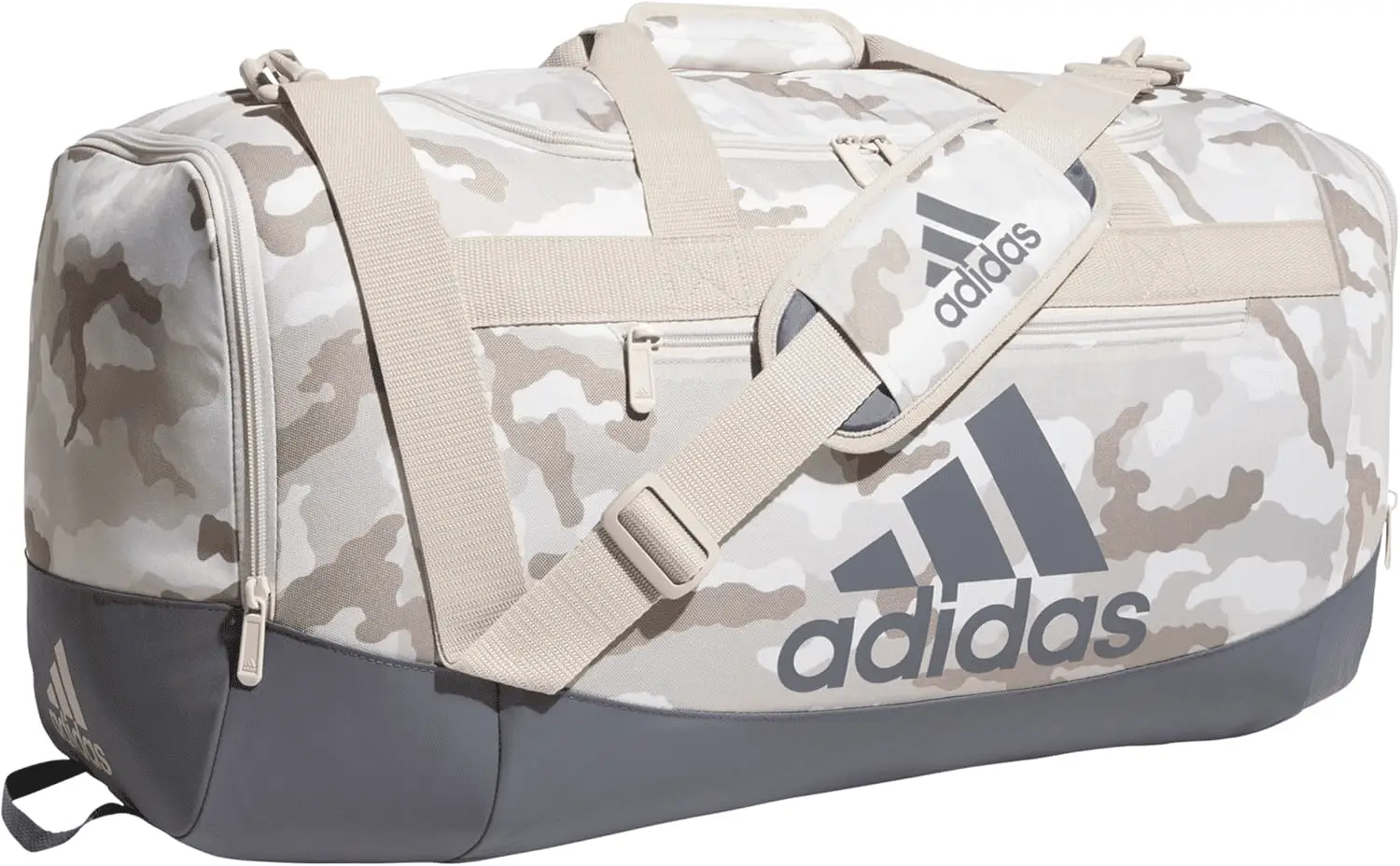 Introducing the adidas Defender 4.0 Duffel, the gym duffle bag for men and women who value both style and utility. These versatile travel bags offer a sleek design and unmatched functionality, suitable for anyone who needs a reliable duffle bag for their daily routine or weekend trips. Crafted with a water-resistant base material, this durable gym bag helps your belongings stay dry and protected, regardless of weather conditions. The extra roomy main compartment stands tall, allowing for easy packing and accommodating all your essentials with ease. Whether used as overnight bags or travel duffel bags, this bag provides ample storage space and organization with two zippered end pockets that are suitable for team branding and a zippered outside pocket for stashing smaller items. Designed to withstand the rigors of everyday use, this duffel bag is built to stand up to wear and tear, making it the perfect choice for all your adventures. The adidas Defender 4.0 is more than just a travel duffle bag; it’s an essential companion for those who lead an active lifestyle.
