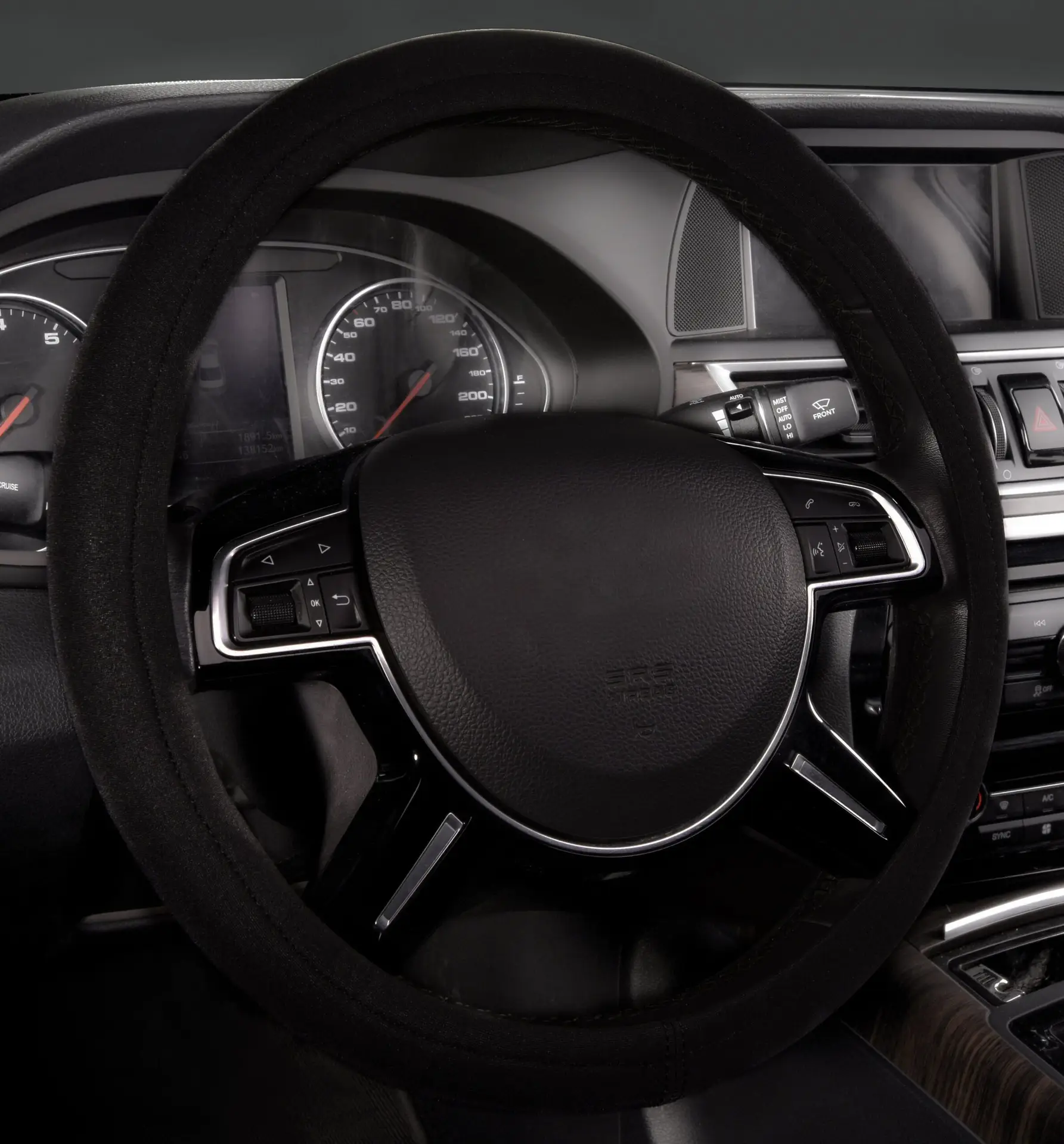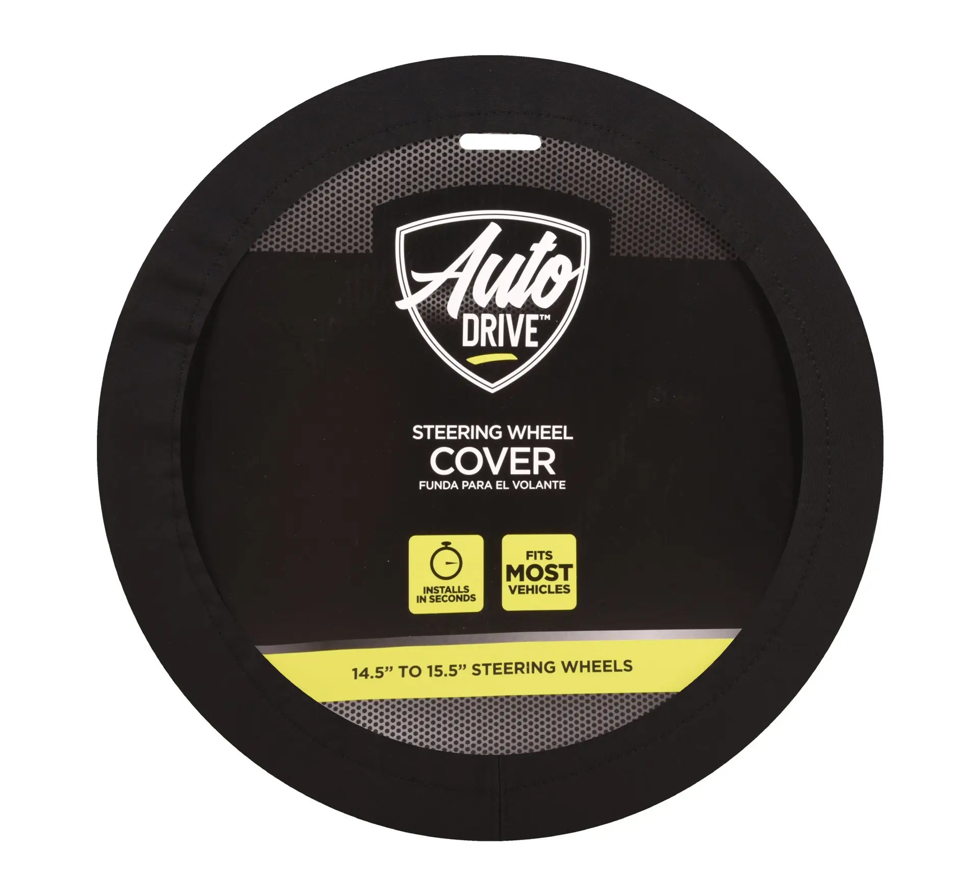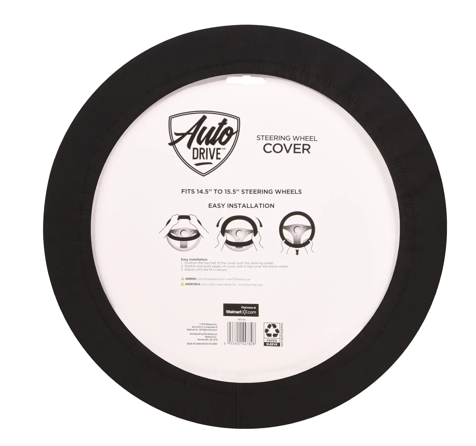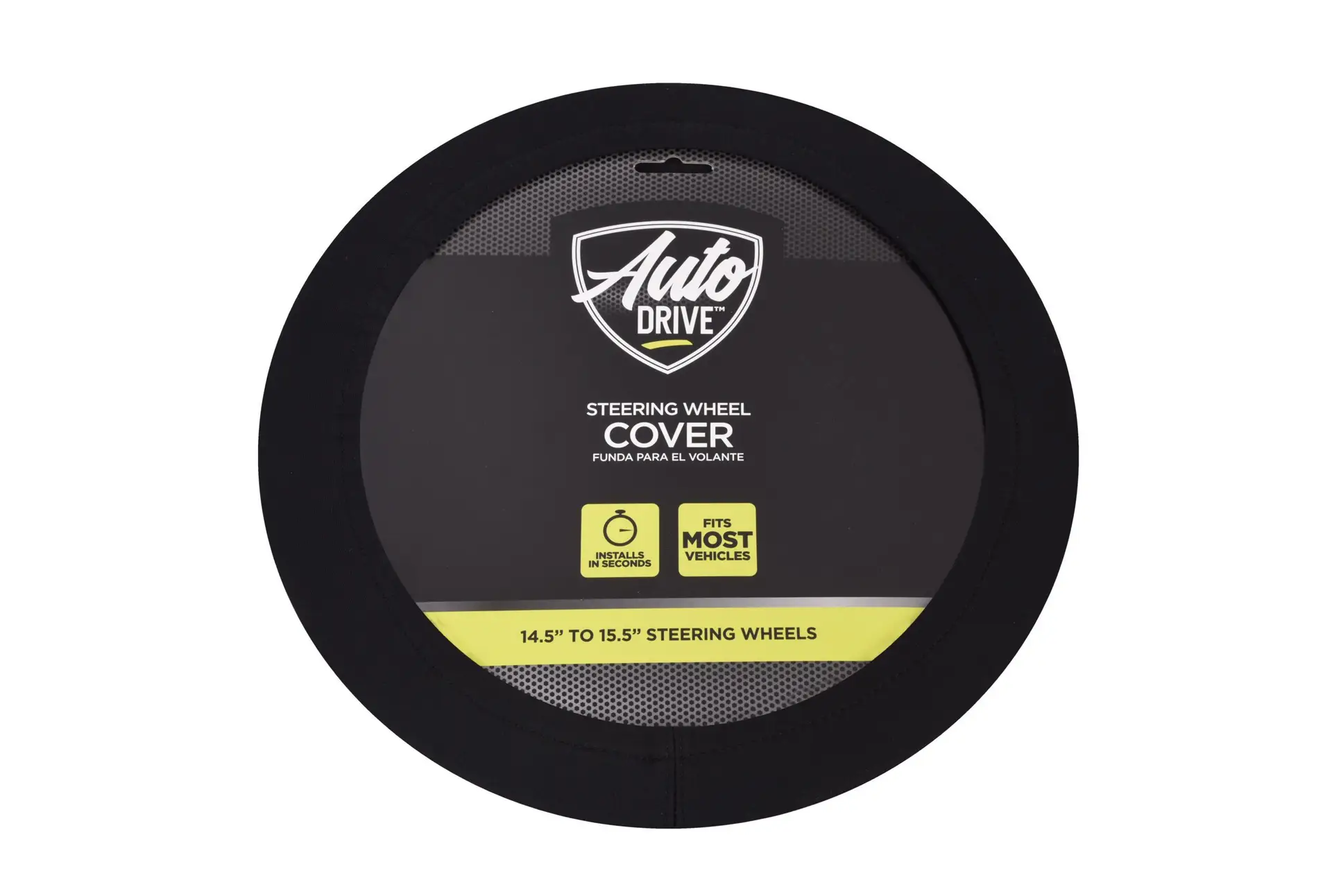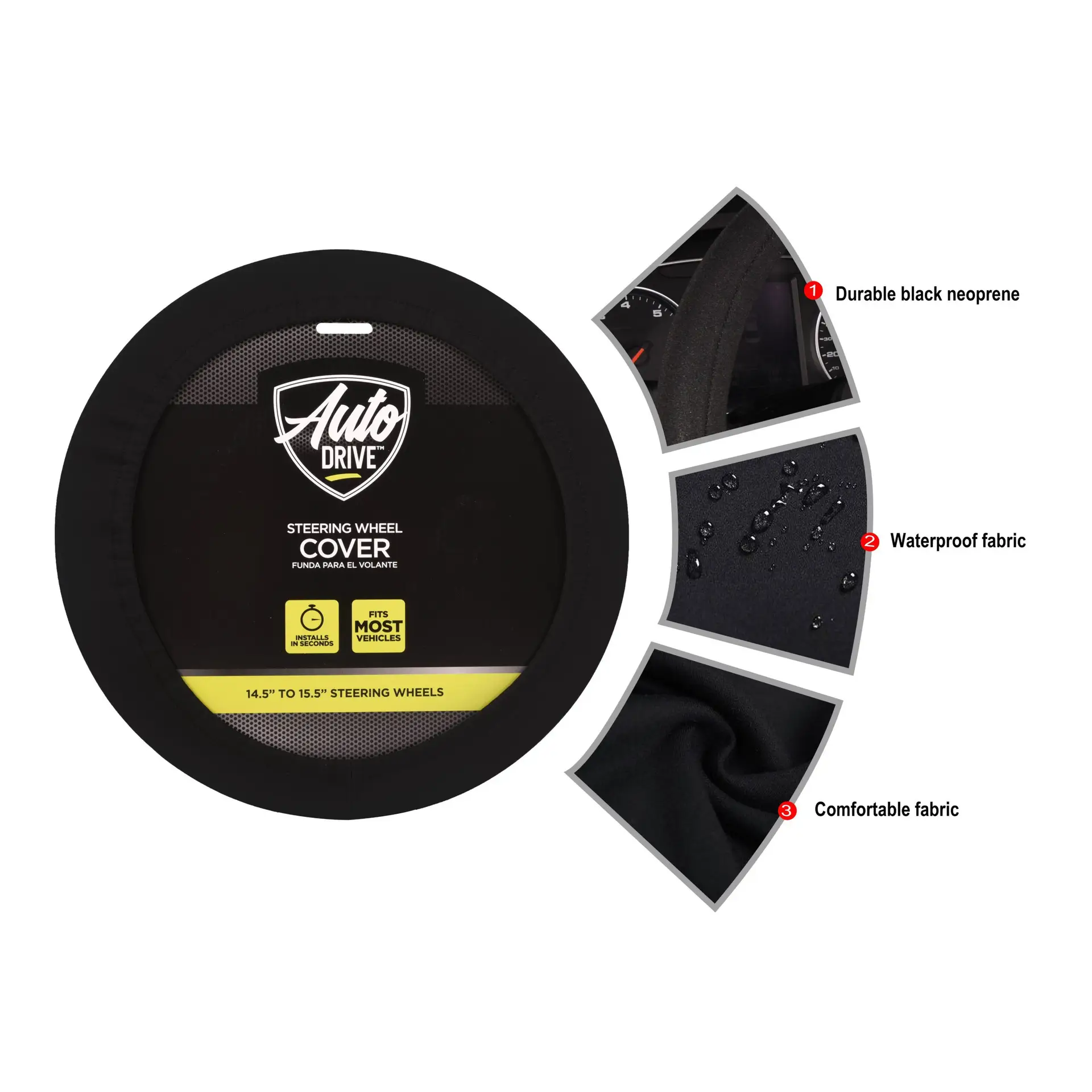 The Auto Drive Universal Fit Black Neoprene Waterproof Steering Wheel Cover, made from a durable neoprene material, fit nice and tight. It provides a better grip and protects your hands from burning hot steering wheels in summer and ice cold ones in winter. It fits all standard steering wheels 14.5″ to 15.5″, suitable for all kinds of vehicles, car, truck or SUV, and can be put on effortlessly in seconds. It feels great to touch and has a clean and sleek appearance.