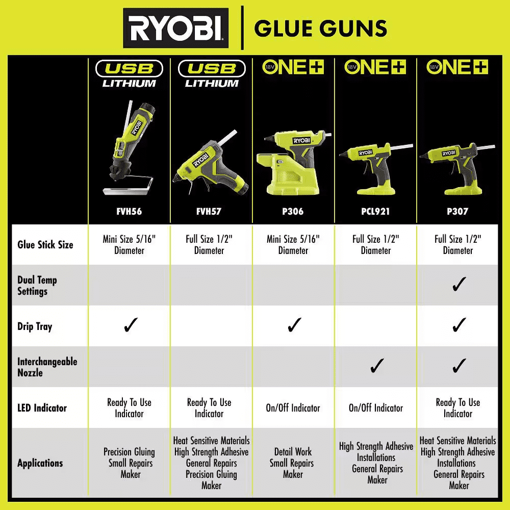 - RYOBI’s Lightest Weight Full Size Glue Gun