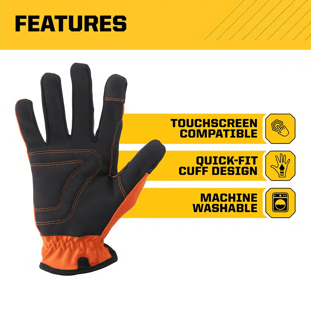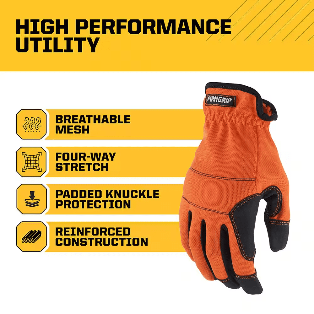 Firm Grip Utility gloves feature reinforced high wear points such as fingertips, padded knuckles, and thumb saddle protection for durability and strength. The quick fit, elastic cuff design allows you to quickly take the gloves on and off as needed. Affordable performance and continuous comfort help keep your hands protected for the long haul.
