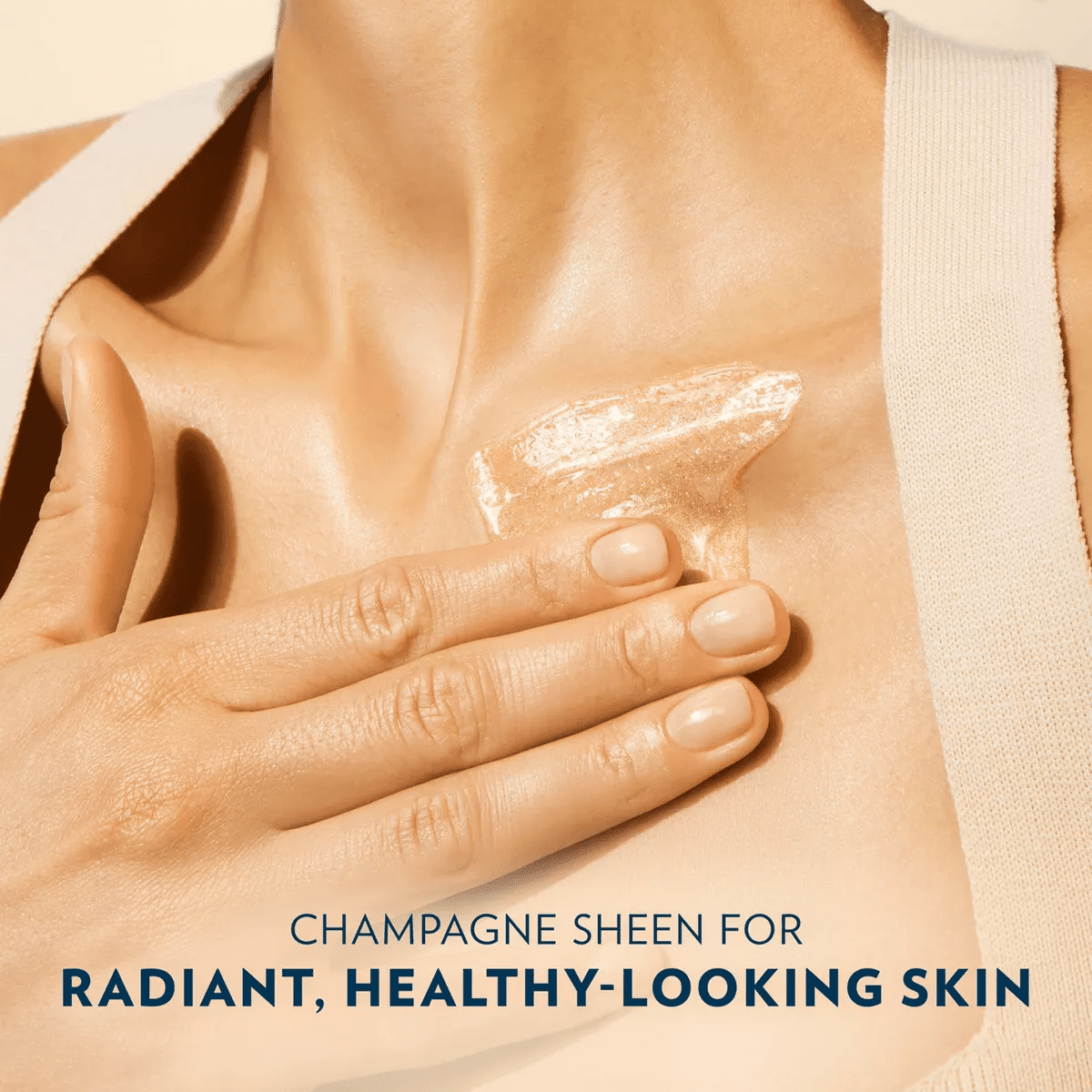 - PEACHY CHAMPAGNE SHIMMER WRAPS SKIN IN GOLDEN-PINK GLOW: Glaze your skin with this luxurious gel body oil that melts in effortlessly for a sunlit glow and radiant finish—without tinting your skin.