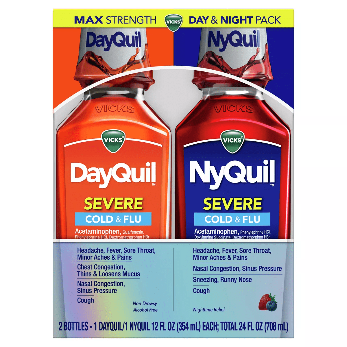 Vicks Dayquil & Nyquil Severe Cold & Flu Medicine Liquid – 24 Fl Oz