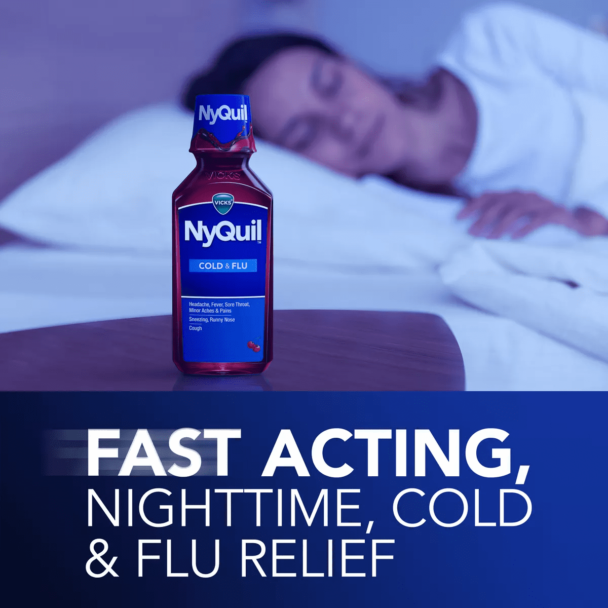 When a cold comes on strong, knock it out with Vicks DayQuil and NyQuil SEVERE Cold & Flu liquid medicine. Just one dose starts working fast to relieve your worst cold and flu symptoms. From the world’s #1 selling OTC cough and cold brand, Vicks DayQuil and NyQuil SEVERE provide fast, powerful strength relief for your worst cold and flu symptoms. With this DayQuil and NyQuil SEVERE Liquid Combo pack, you’ll have the cold and flu multi-symptom relief you need on hand, day or night. Try Vicks DayQuil SEVERE for fast, non-drowsy daytime relief and use Vicks NyQuil SEVERE when you need nighttime relief for your ugliest, roughest, toughest cold symptoms so you can get the rest you need. Vicks DayQuil SEVERE provides multi-symptom relief to treat coughing, stuffy nose, minor aches, chest congestion, sinus congestion, sinus pressure, sore throat, headache, and fever. Vicks NyQuil SEVERE provides multi-symptom relief to treat coughing, stuffy nose, minor aches, sneezing, sinus congestion, sinus pressure, sore throat, headache, and fever. Vicks has been trusted for over 125 years to relieve your cold and flu symptoms. When you need fast, powerful cold and flu relief, turn to Vicks DayQuil and Nyquil.