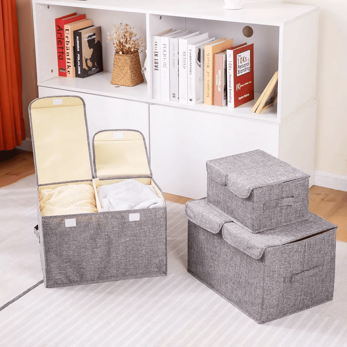 - Premium Fabric: Made of high-quality Faux Linen and Cotton Linen, with sturdy plastic board support instead of cardboard. Dustproof, moisture-resistant, breathable, and durable, keeping your items well-protected.
