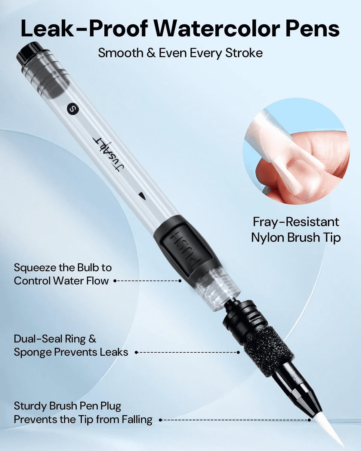 - 【Easy to Control】 Made with non-toxic, durable nylon bristles, this water brush ensures a smooth and controllable flow of ink or water. Its ergonomic grip design helps both professional painters and beginners master watercolor techniques with ease