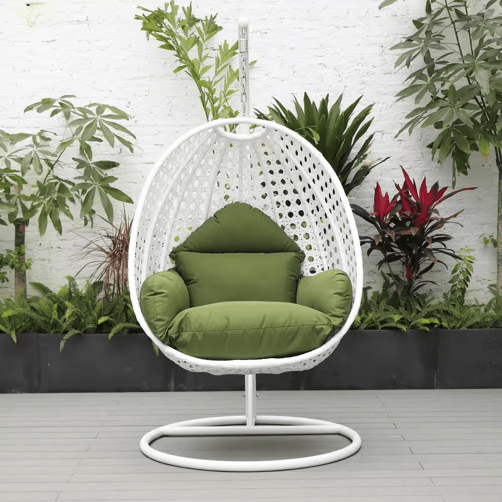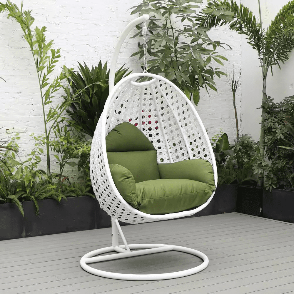 This fun egg-shaped porch swing chair which fits you comfortably was built to last in the outdoors with its strong and durable frame it will be perfect for all weathers. Sit in luxurious comfort while surrounded by the peace and beauty of your backyard, or enjoy a good book indoors with this comfortable hanging chair. Enjoy a relaxing seating experience from the comfort of this Egg hanging Swing chair with Iron stand.