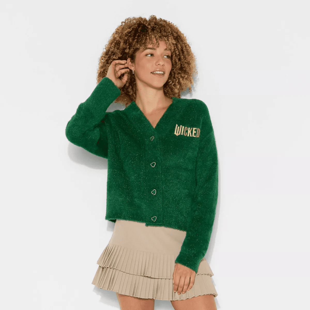Wicked X Katie Kime Women’S Logo Graphic Cardigan – Emerald Green