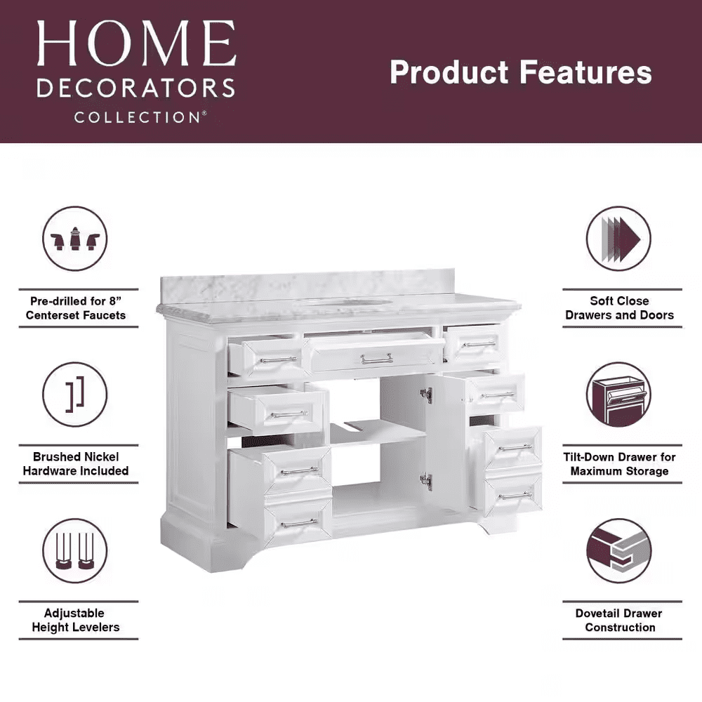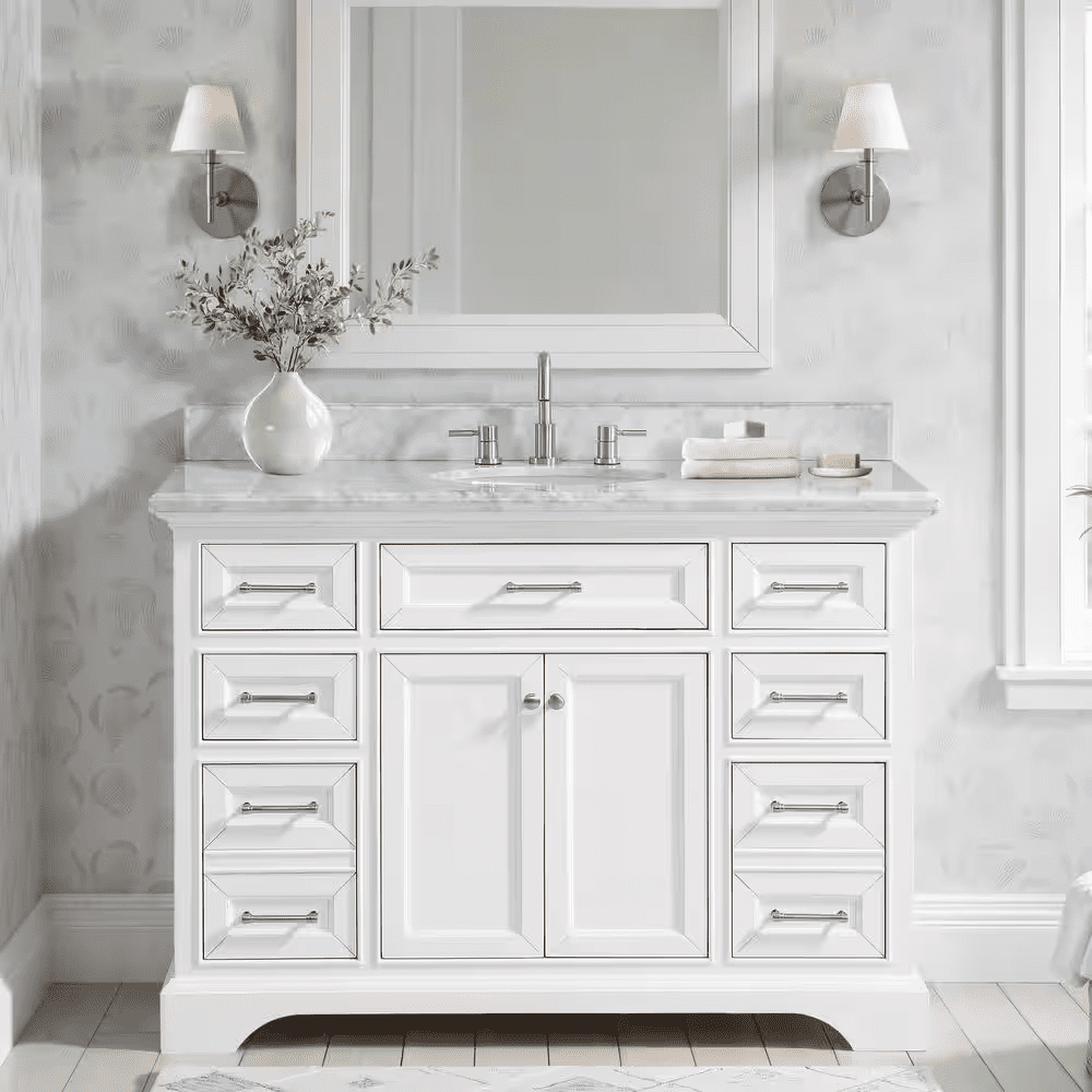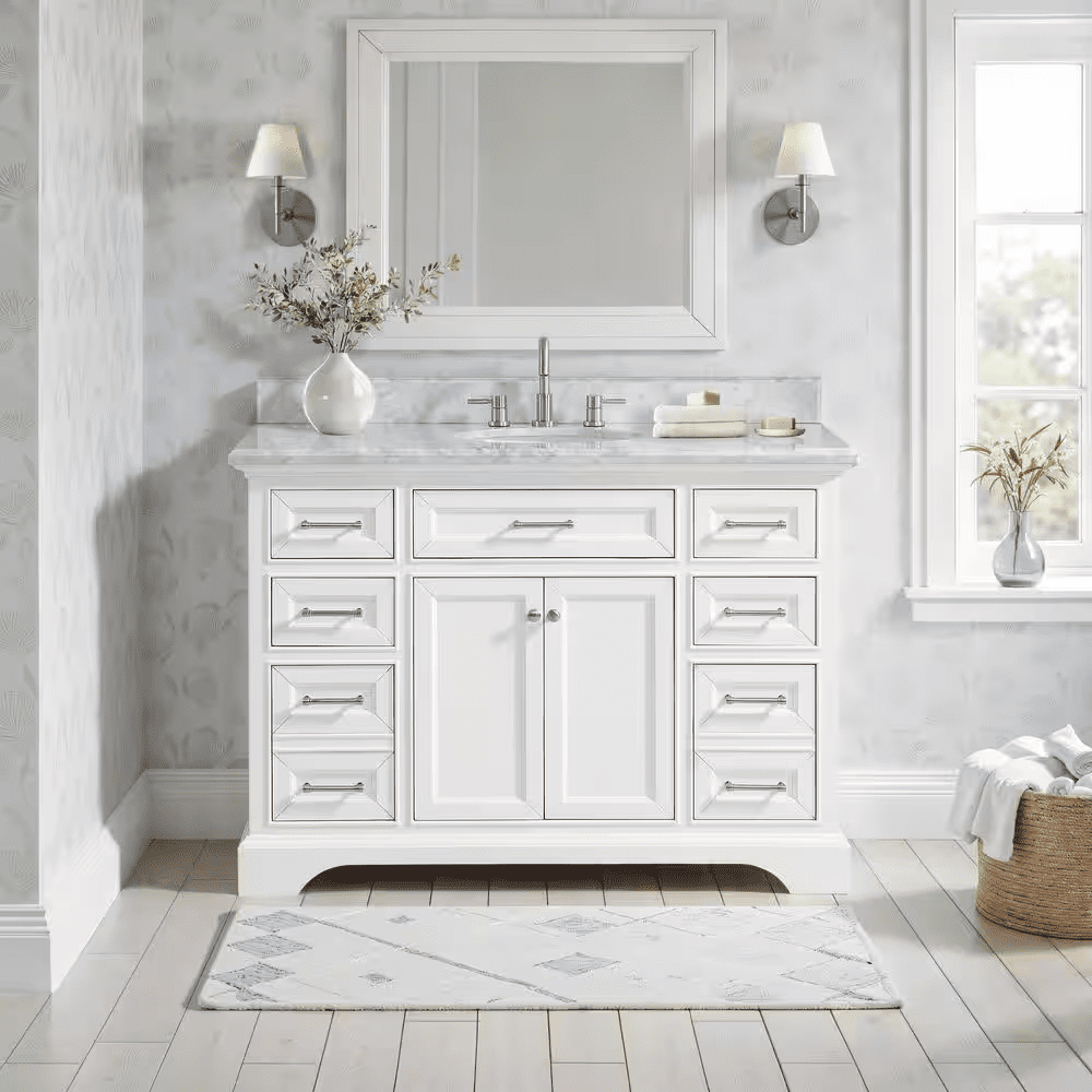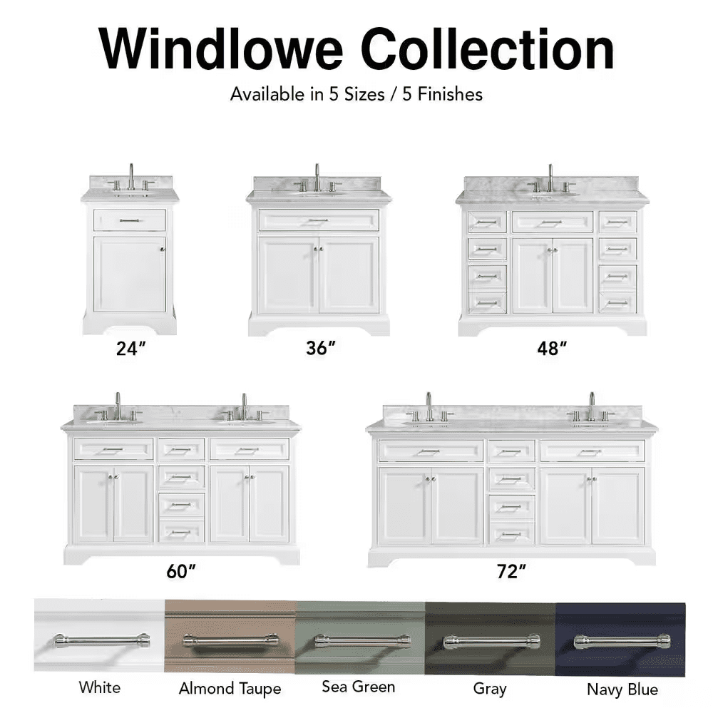 The Windlowe Bathroom Vanity Collection seamlessly complements the traditional decor style, with contemporary elements. Expertly crafted from durable, easy-to-clean wood, this bathroom vanity offers both longevity and effortless maintenance. Its generously sized surface provides ample space for everyday essentials, while the design’s graceful blend of classic and modern elements adds a timeless elegance to any bathroom.
