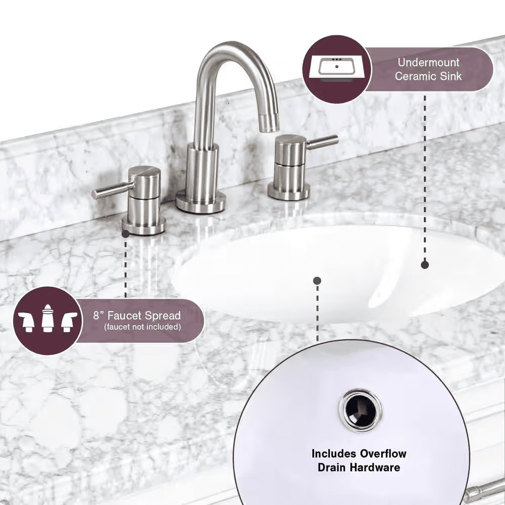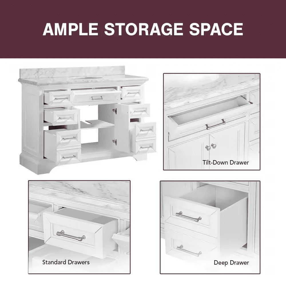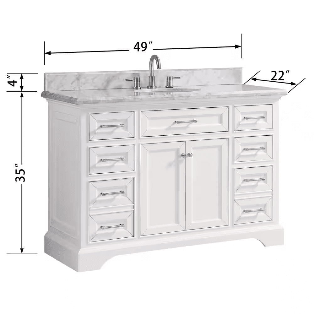 - 49 in. W x 22 in. D x 35 in. H bath vanity & natural marble top