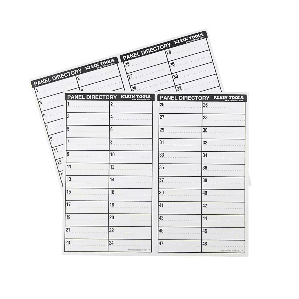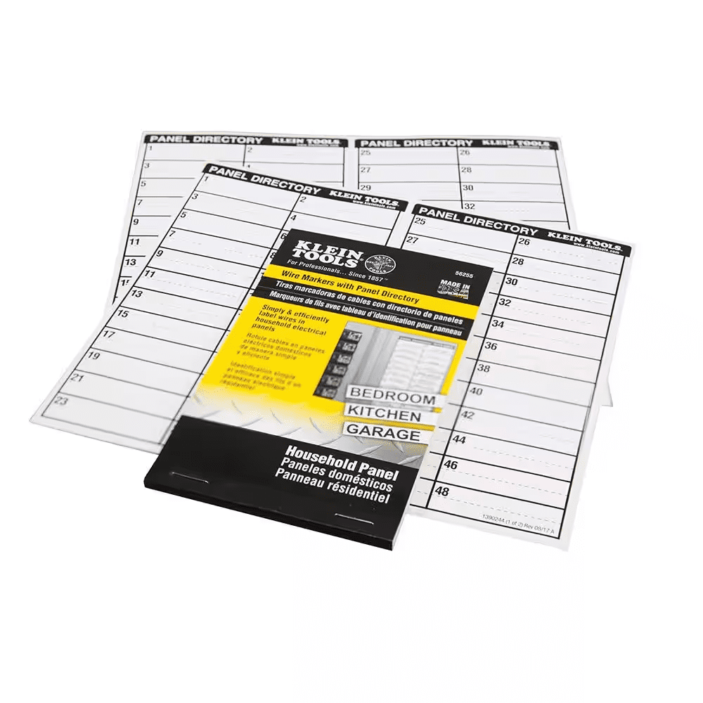 Label wires and your household panel quickly and easily with Klein Tools new preprinted markers and panel directory. These wire and panel markers are made of durable vinyl coated cloth and contain larger print to make them easier to read. Klein is now offering marker books in 5 different configurations to meet every labeling need.