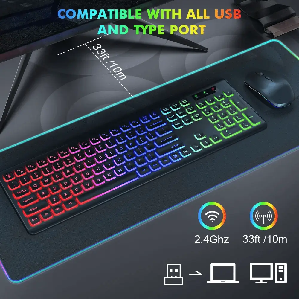 - 👍 BROAD SYSTEM COMPATIBILITY – This backlight keyboard and mouse combo is designed to seamlessly work with a wide range of devices, including PCs, desktops, laptops, and notebooks. It offers compatibility across multiple operating systems, such as Windows, Linux, Chrome, and Mac. (Please note that the multimedia keys may not offer full compatibility with Mac OS systems).