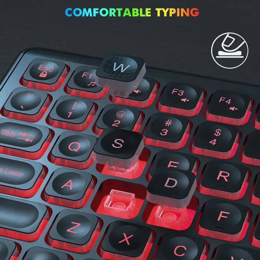 - 🌈IMPRESSIVE RGB ILLUMINATION – This black keyboard boasts a vibrant rainbow backlight with three adjustable brightness settings. Meanwhile, the mouse offers a whopping 15 interchangeable lighting effects. The illuminated keycaps and letters ensure effortless use even in dim environments.
