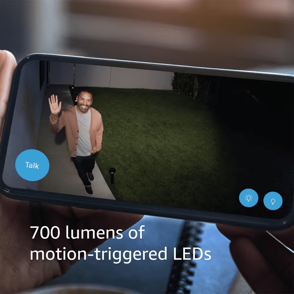 - 700 lumens of motion-triggered LED lights, works with Alexa