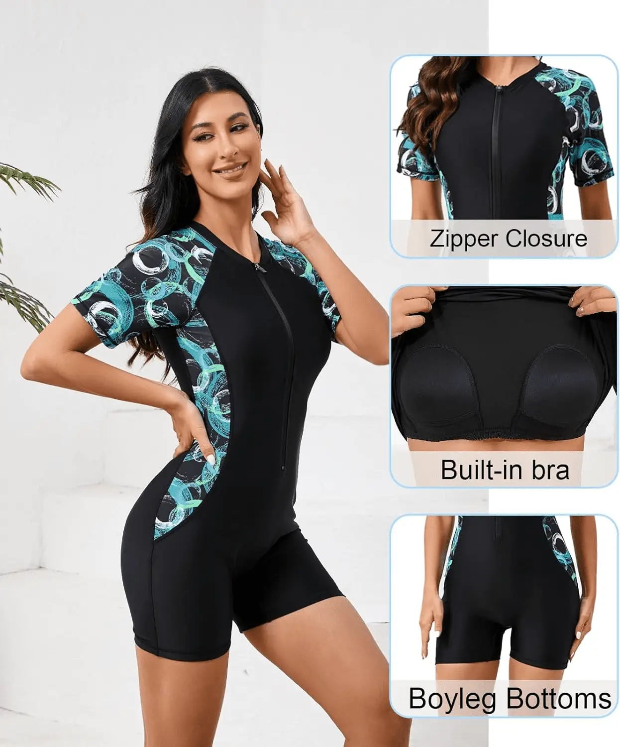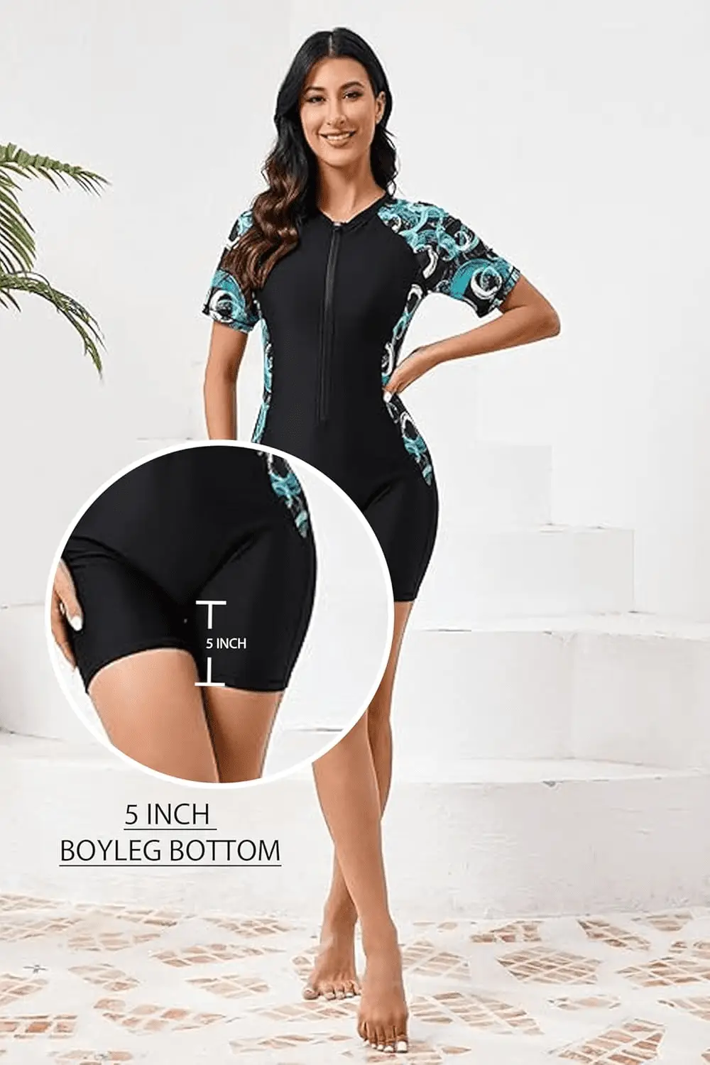 Thigh length boyleg bottoms offers a modest look for your vacation.