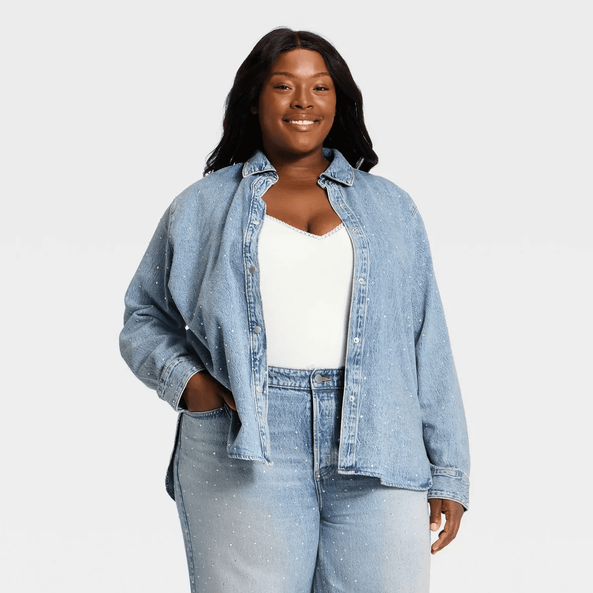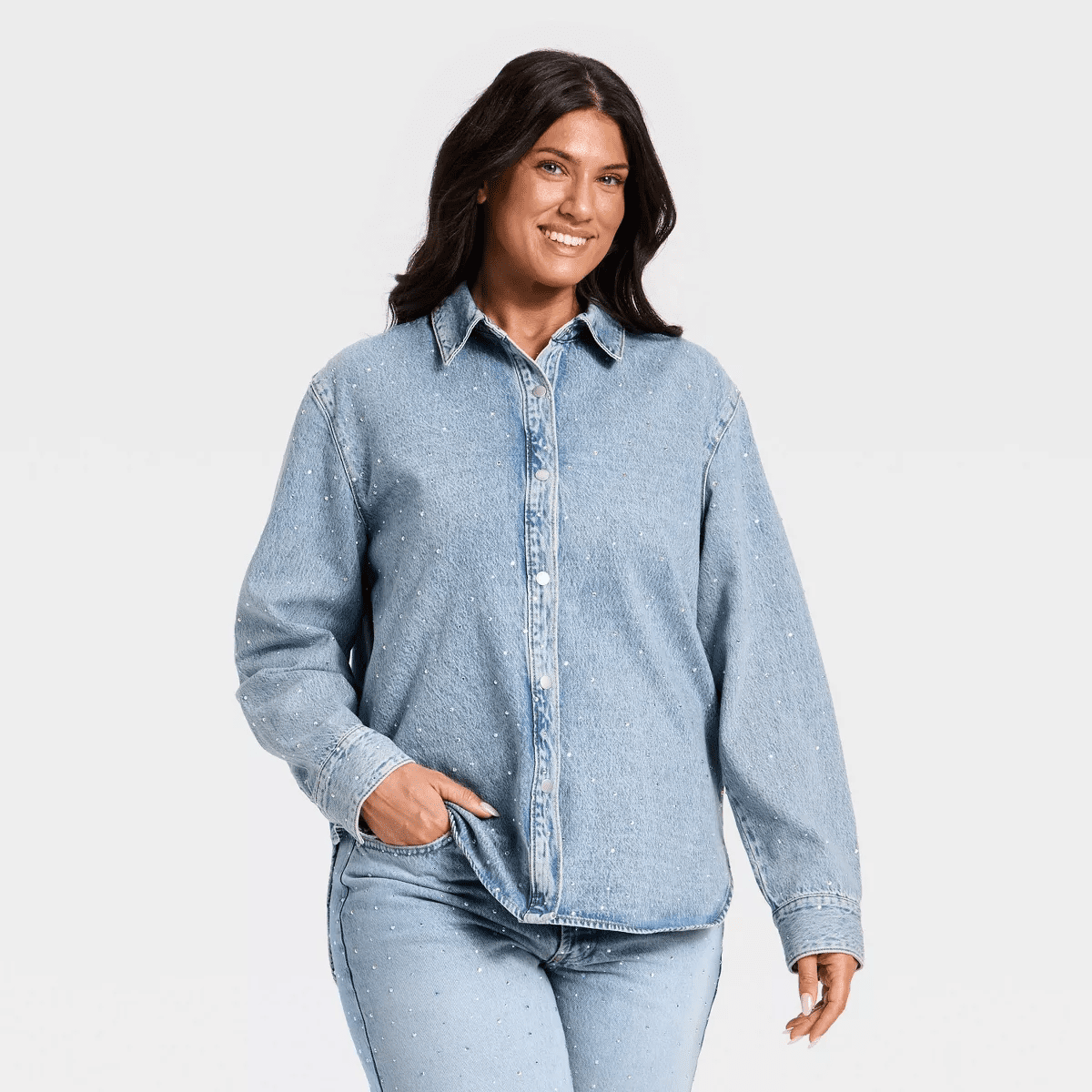 - Universal Thread denim shirt embellished with rhinestones