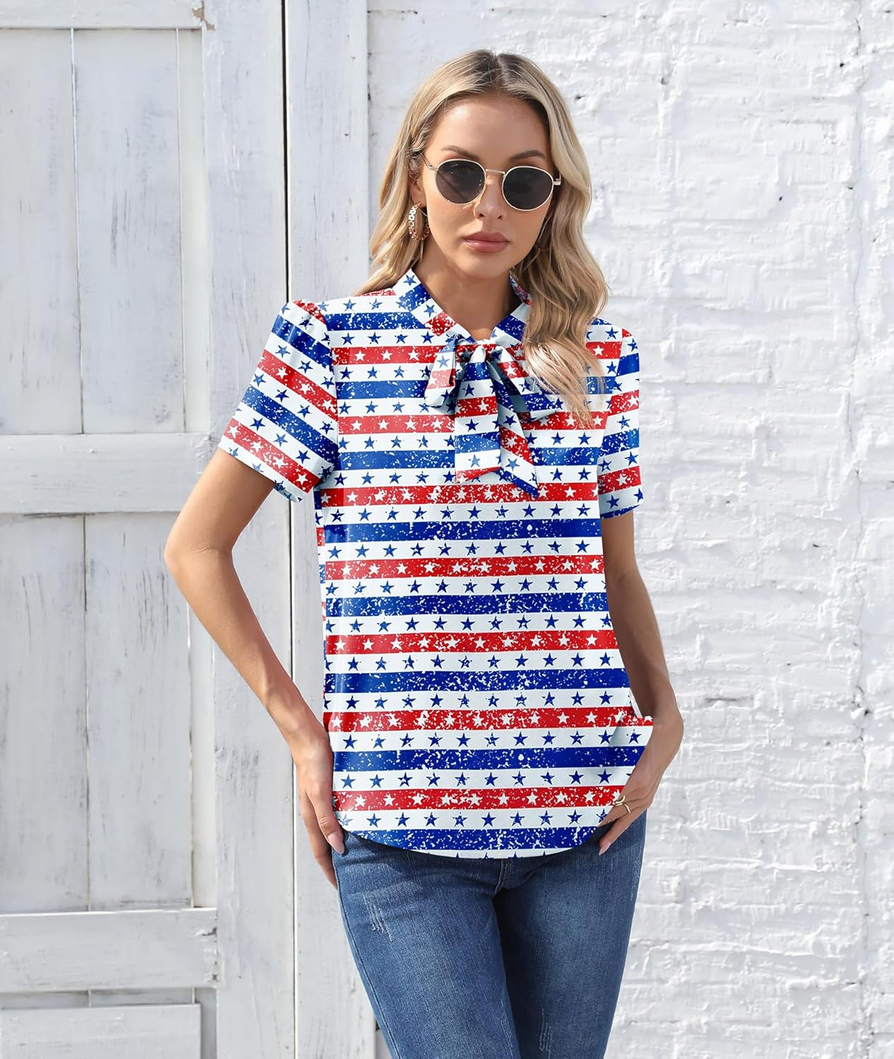 CZYINXIAN Tie Neck Blouse for Women Women Summer Solid Color Tops Blouses
