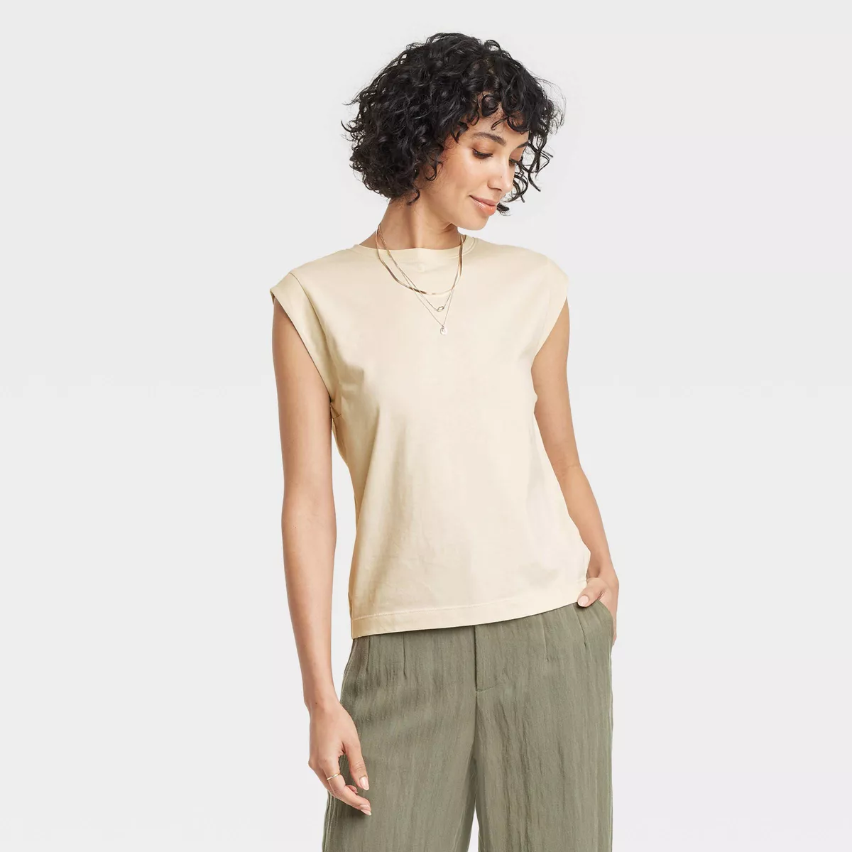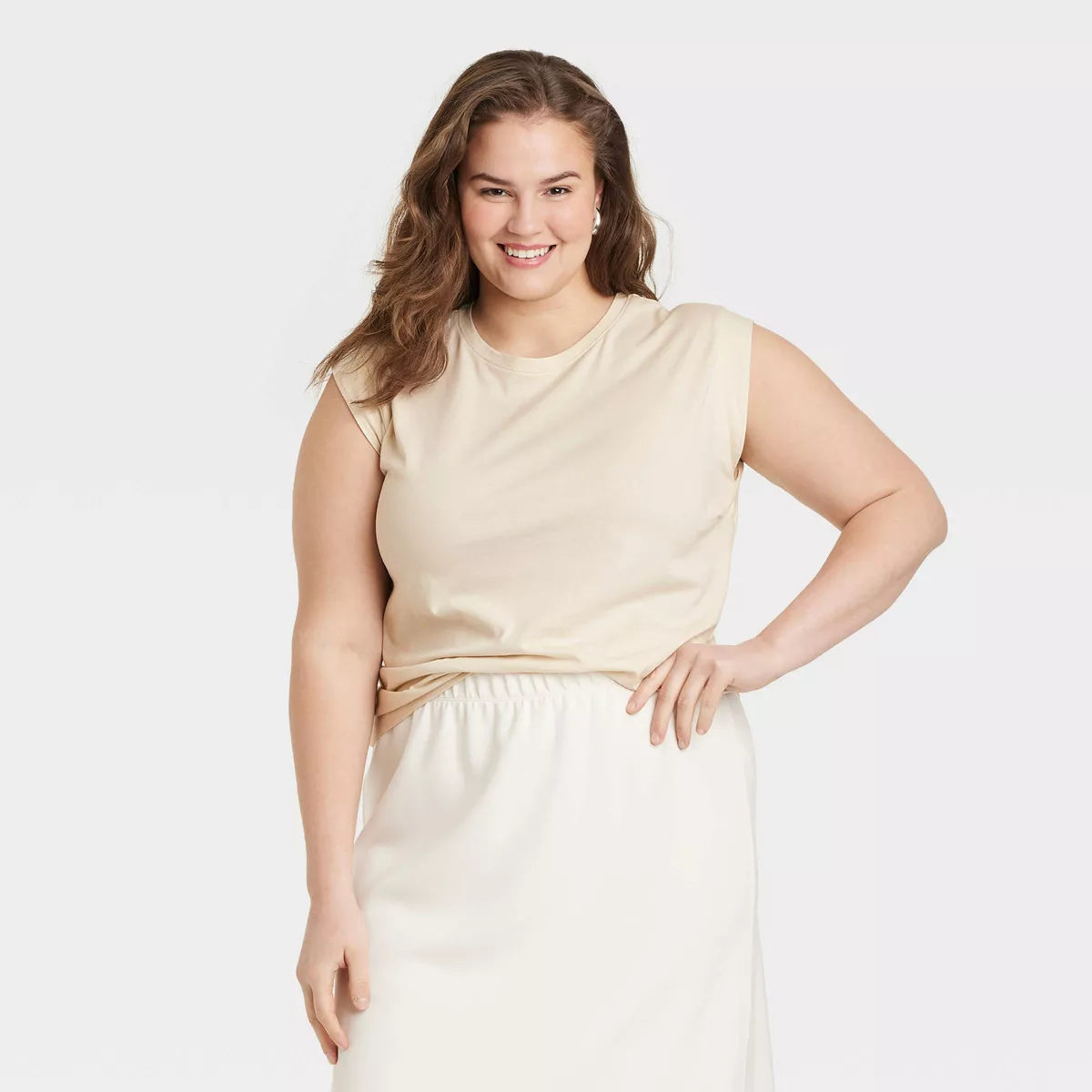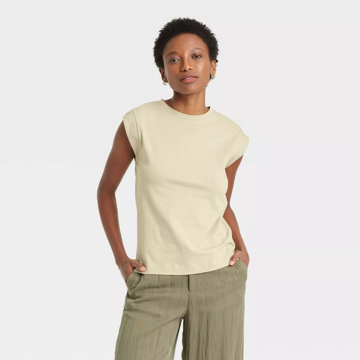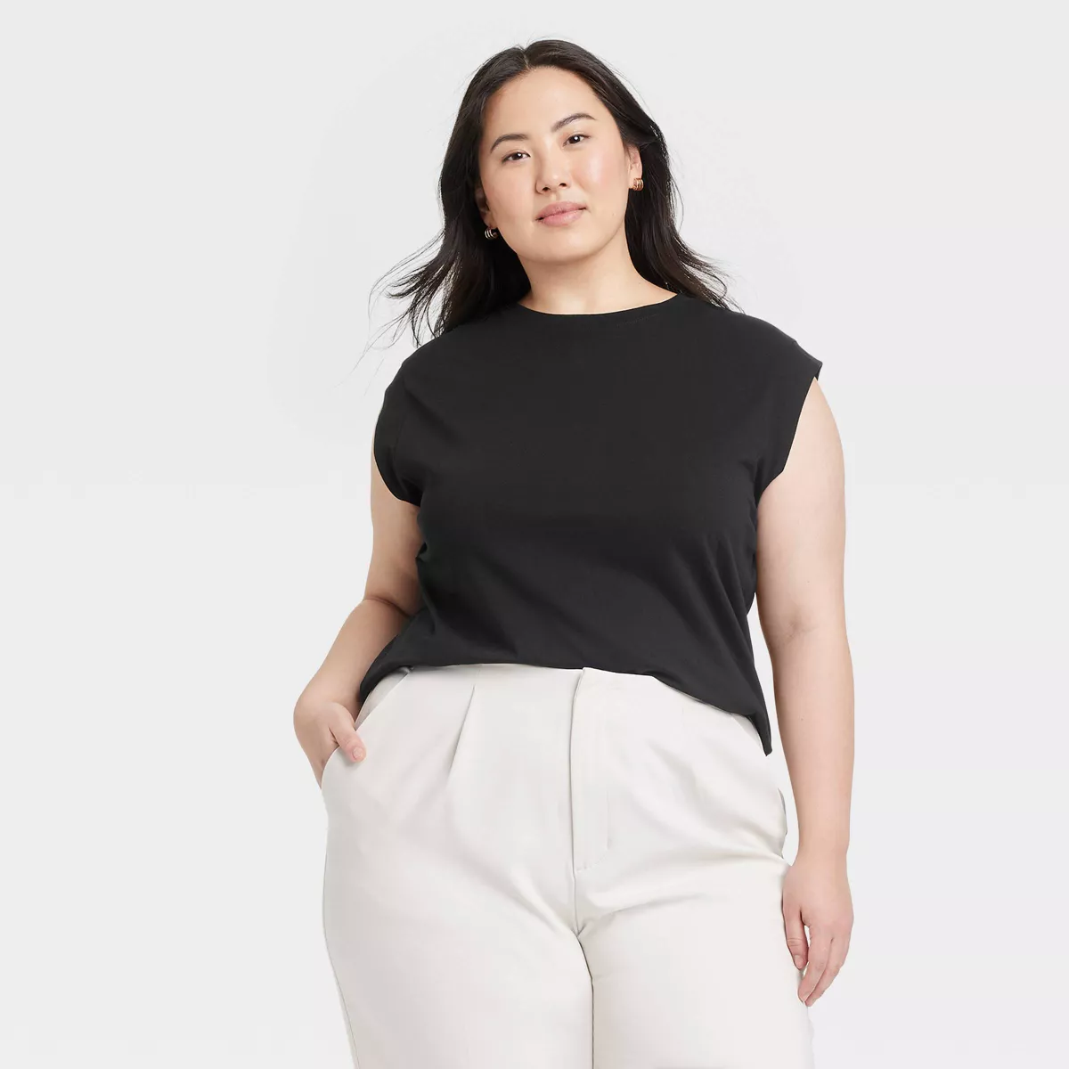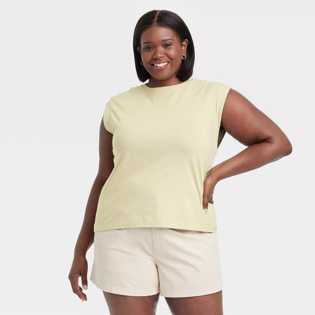 Embrace the fashionista in you with this Extended Short-Sleeve T-Shirt from A New Dayâ„¢. This solid-color T-shirt is made from cotton jersey fabric and offers soft and cozy comfort. Designed in a crew neckline and cap sleeves, this long tee is great for casual outings or workwear. Pair it with your favorite jeans and shoes for a classic look. .