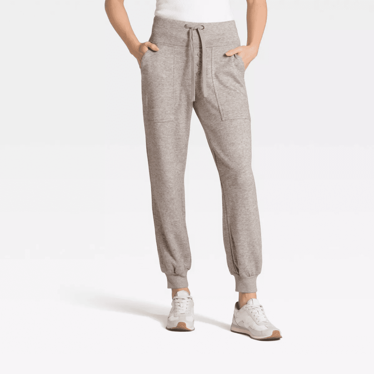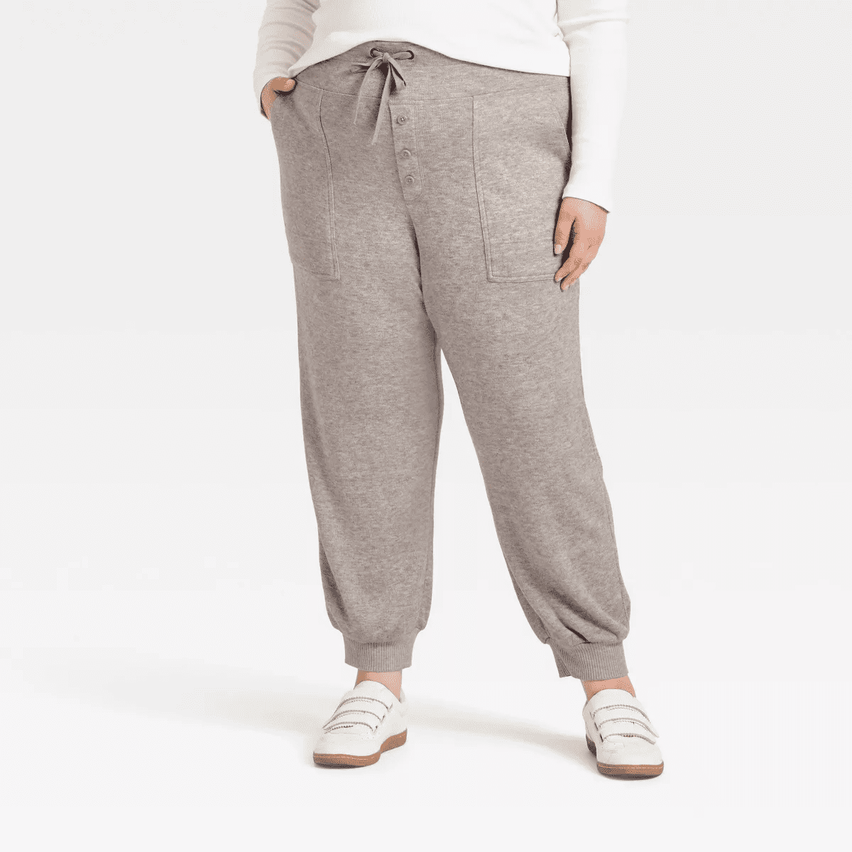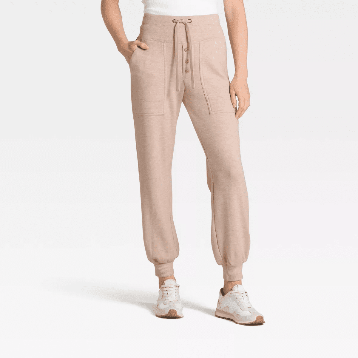 Pull on easy comfort with these High-Rise Knit Joggers from Universal Threadâ„¢. Crafted from a stretchy knit fabric blend of rayon, recycled polyester and recycled nylon, these joggers move with you all day. It’s designed in a high-rise cut, while the front tie lets you adjust the fit and front pockets provide space for stashing on-the-go essentials.
