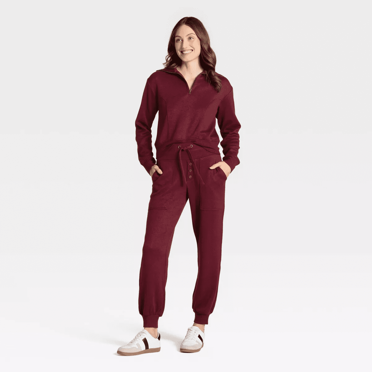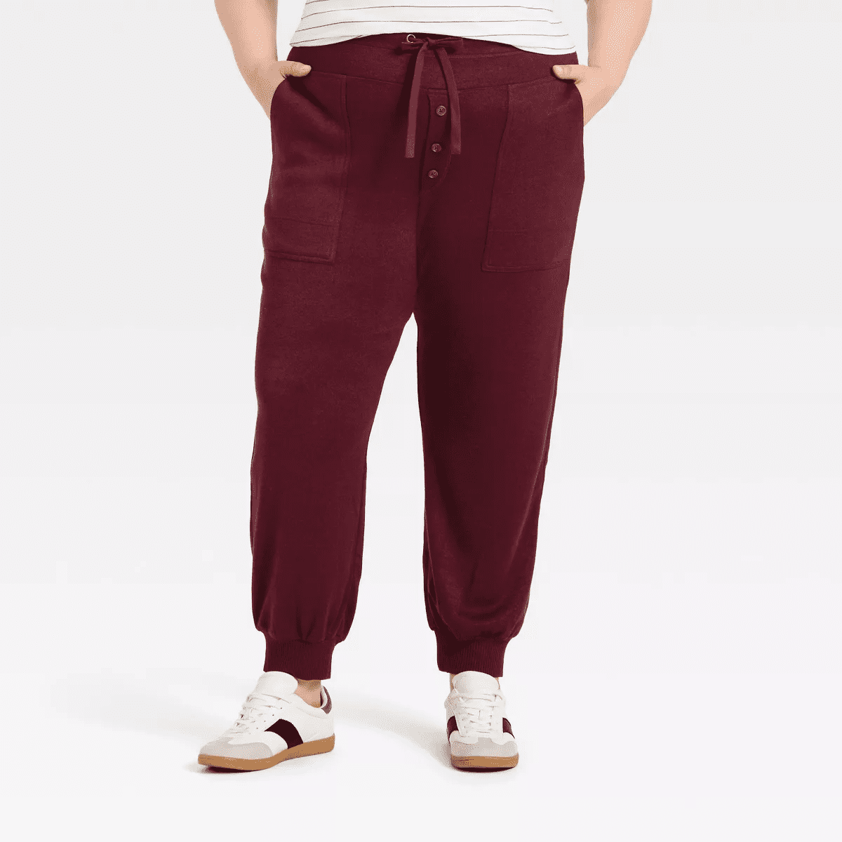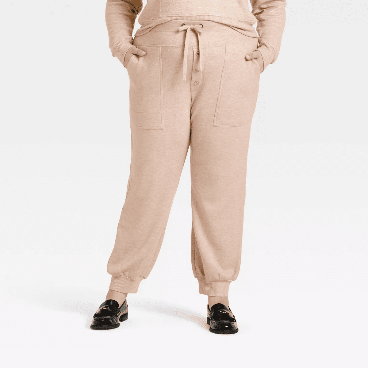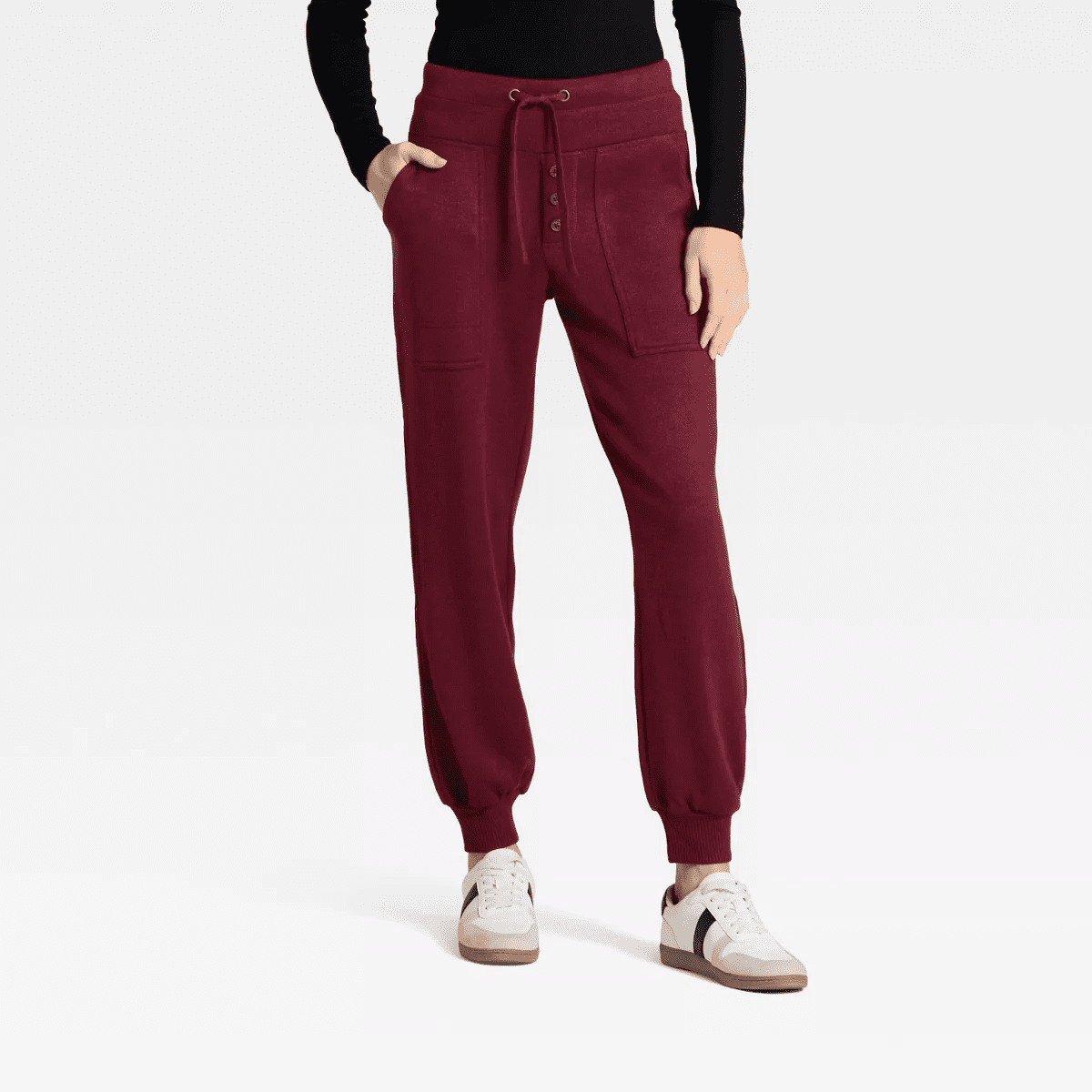 Pull on easy comfort with these High-Rise Knit Joggers from Universal Threadâ„¢. Crafted from a stretchy knit fabric blend of rayon, recycled polyester and recycled nylon, these joggers move with you all day. It’s designed in a high-rise cut, while the front tie lets you adjust the fit and front pockets provide space for stashing on-the-go essentials.
