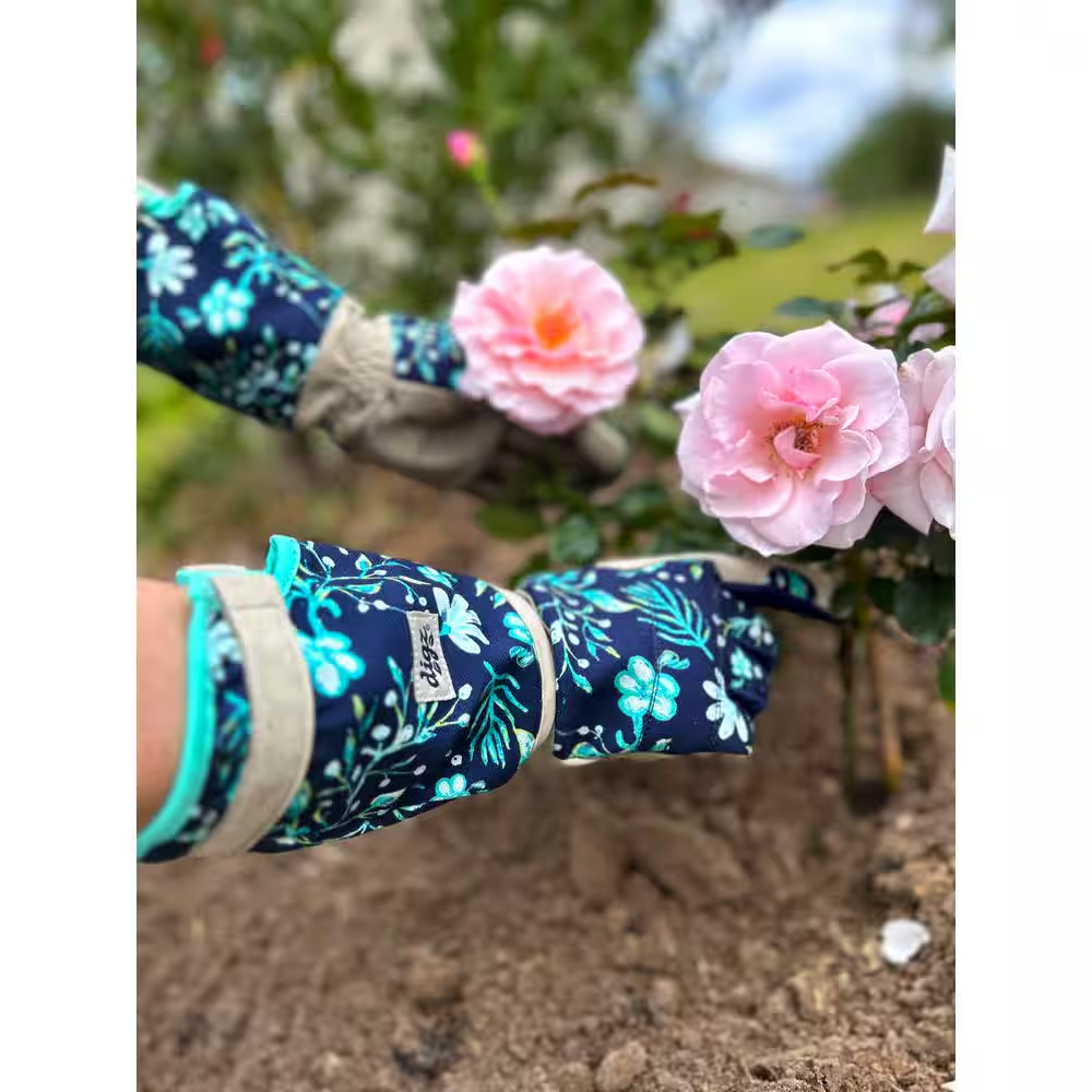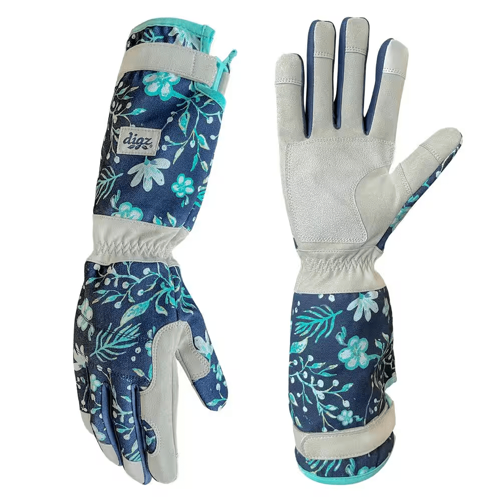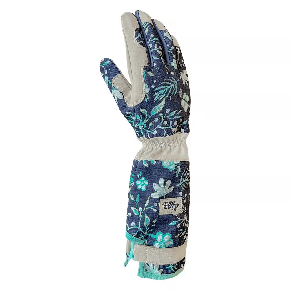 Spending time picking your favorite roses means spending time next to thorns and other prickly plants. Digz Long Cuff Garden Gloves are perfect for keeping your hands and arms protected from scratches and abrasions. Adorned in our fashion-forward midnight floral pattern, these gloves are crafted from high performance synthetic materials that provide a better fit and enhanced dexterity while remaining fully machine washable. The adjustable strap tightens the cuff, keeping out unwanted dirt and debris.
