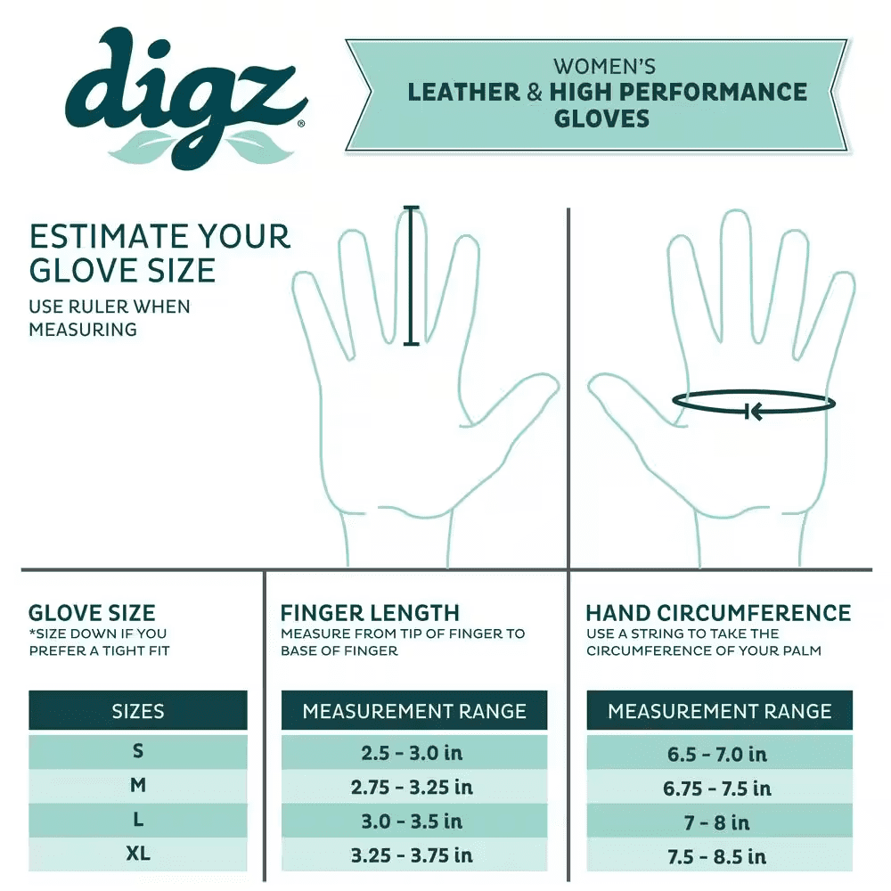 Ideal for a wide variety of gardening and outdoor projects. Digz Signature garden gloves are an all-around great choice to keep your hands safe, comfortable, and stylish. Featuring a breathable, stretch spandex back and padded palm, these women’s work gloves are designed for all-day comfort, and you can just toss them in the washing machine for easy cleanup.