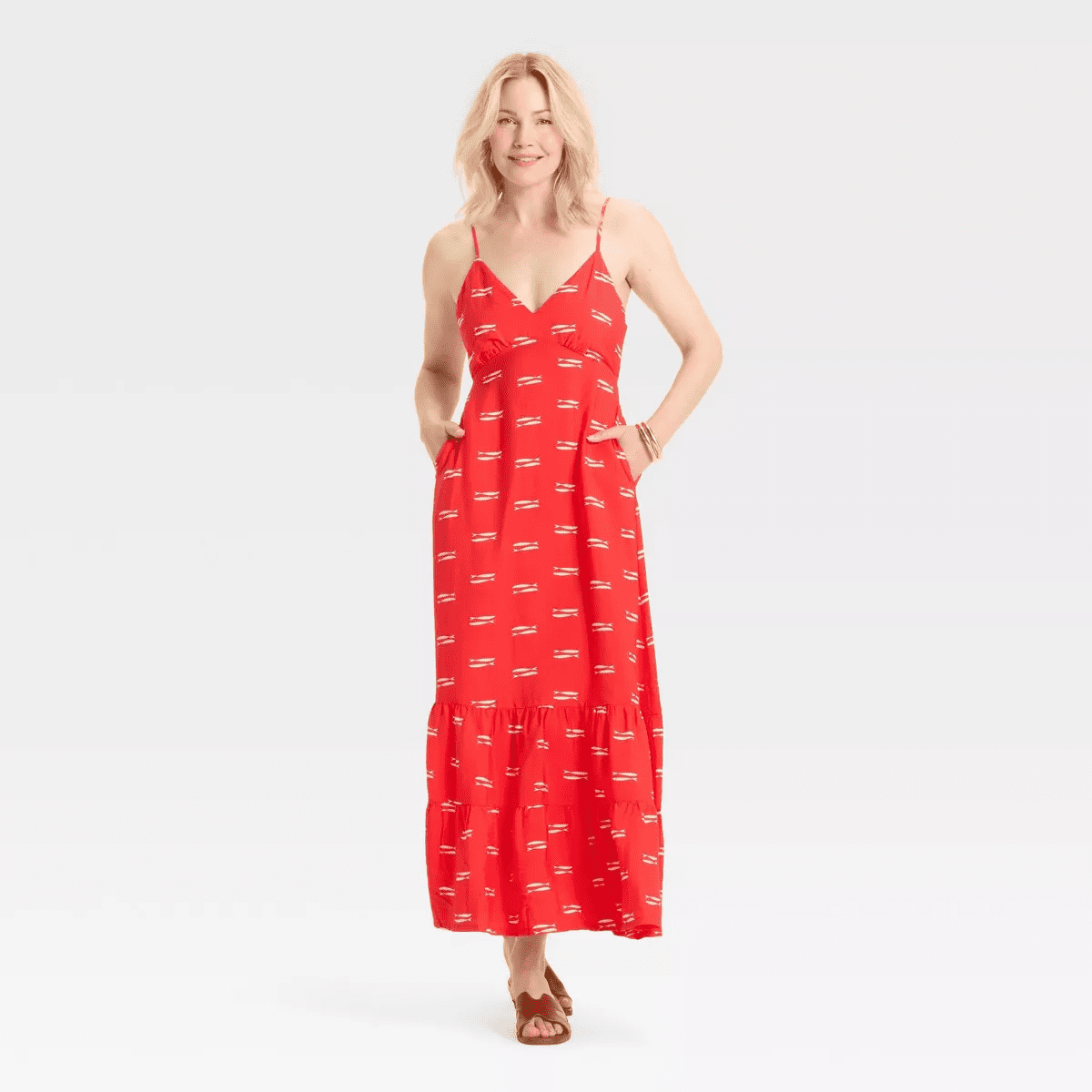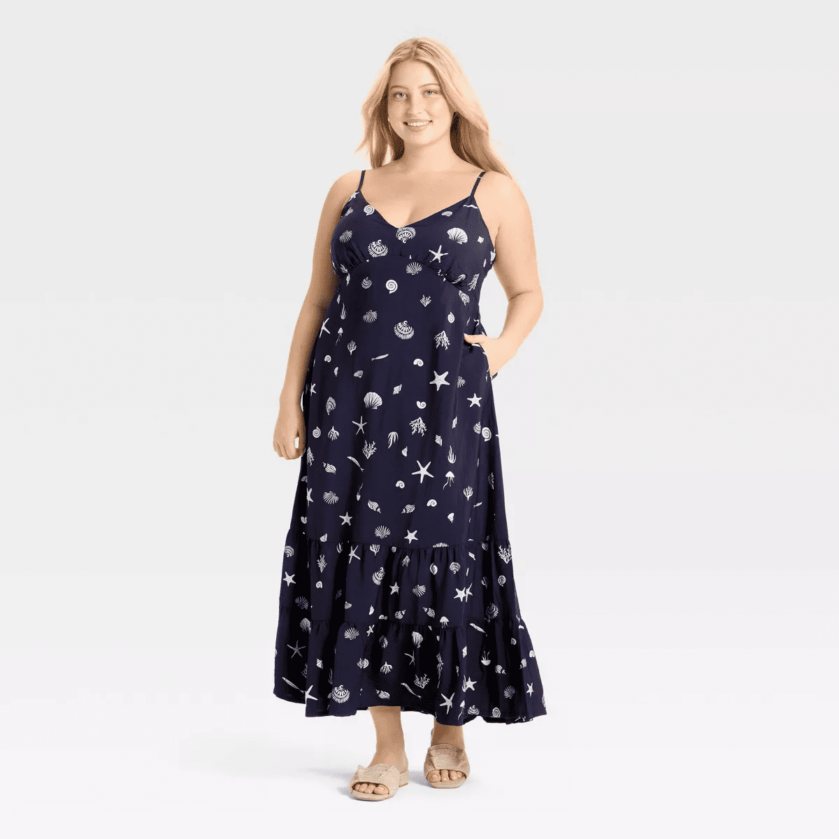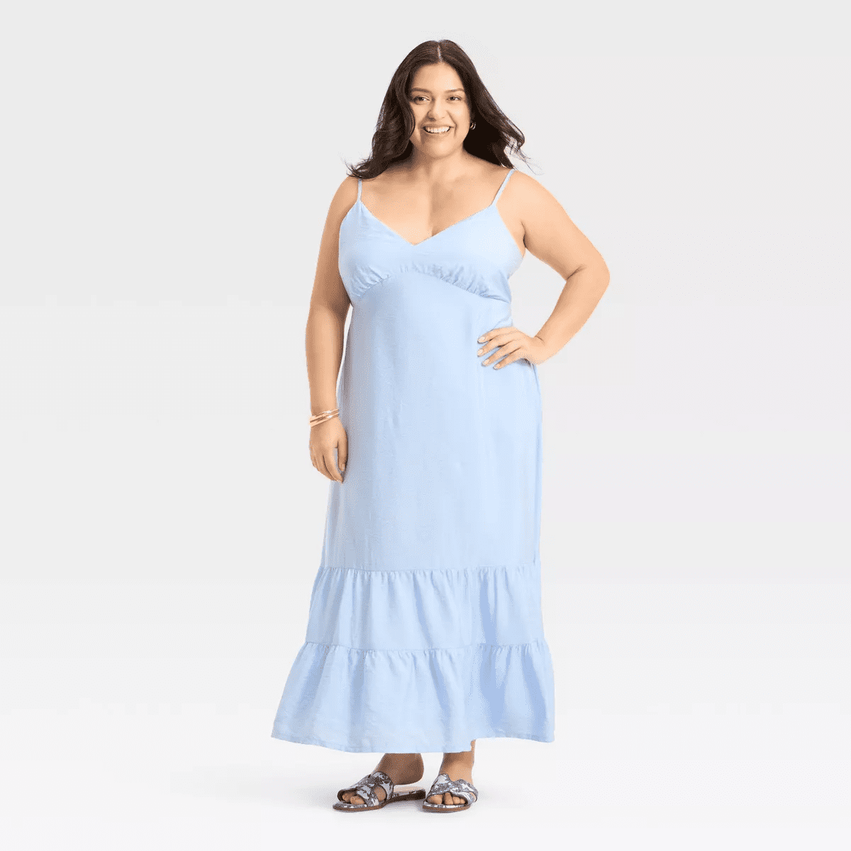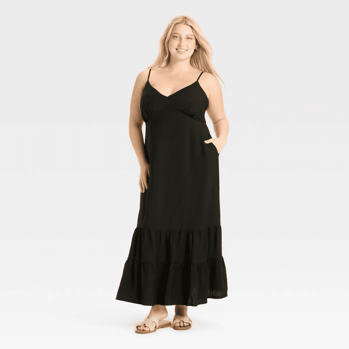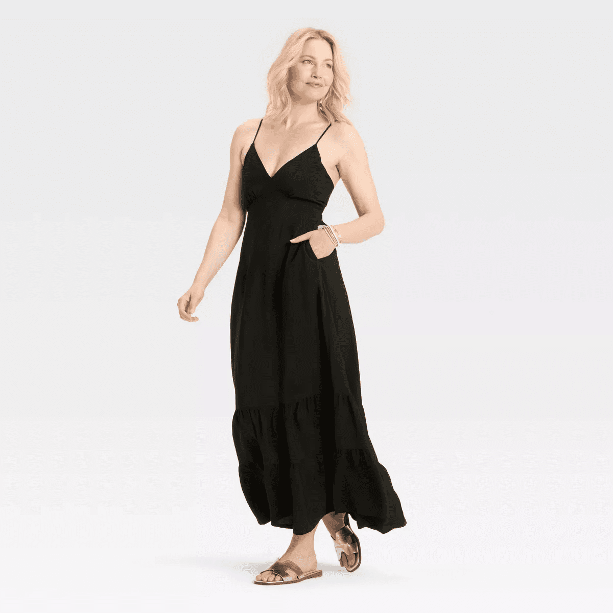 From breezy days at the park to weekend brunch with friends, this Open-Back Maxi Dress from A New Day™ makes a go-to pick on any occasion. The sleeveless maxi dress is made from midweight woven fabric for comfortable wear. It’s designed with a flattering V-neckline and an open back for a gorgeous look, while the adjustable spaghetti straps help you find the right fit. Plus, the inside pocket adds functional detail to your look. Pair it with accessories and footwear of your choice to complete the chic outfit.