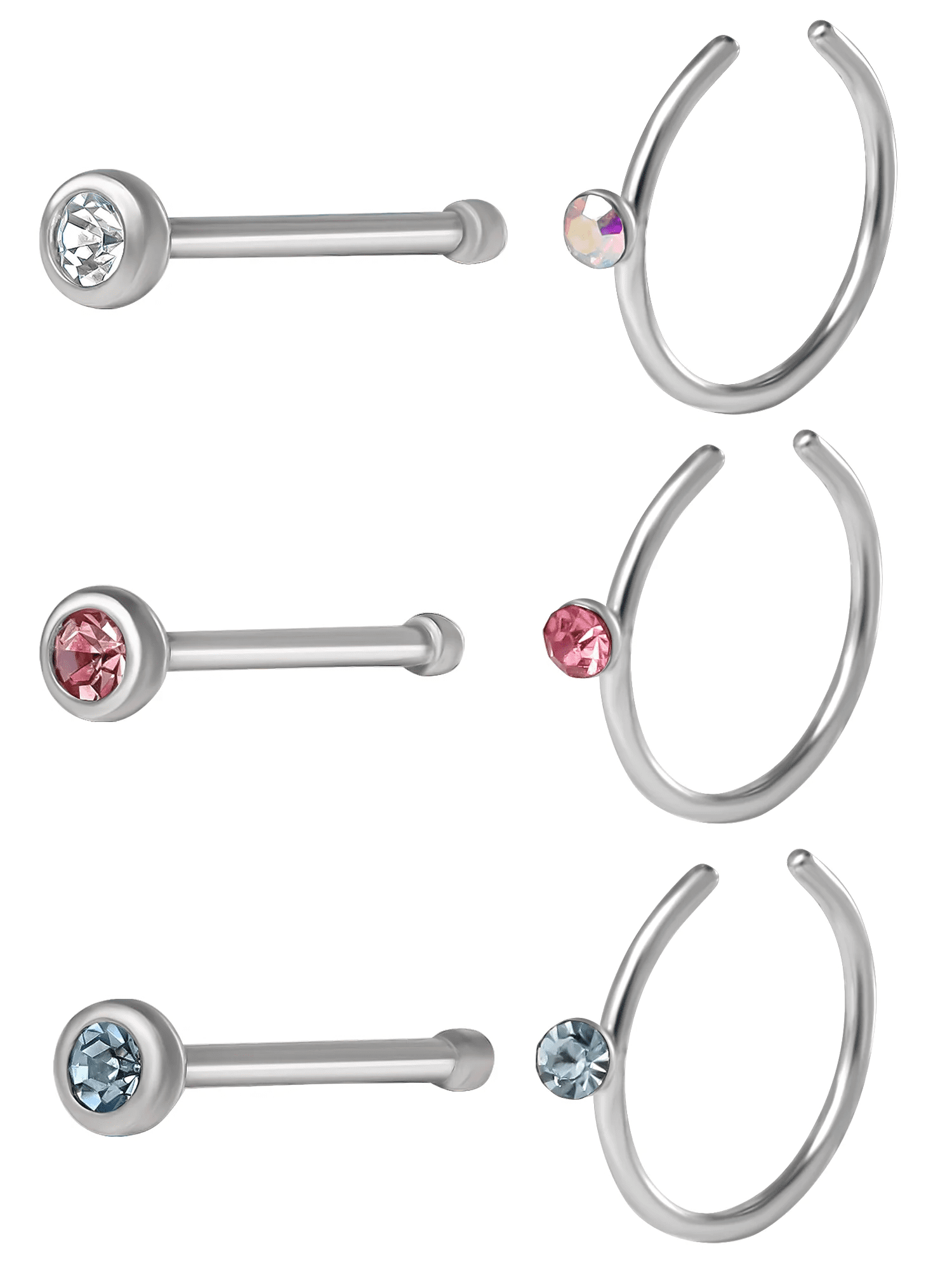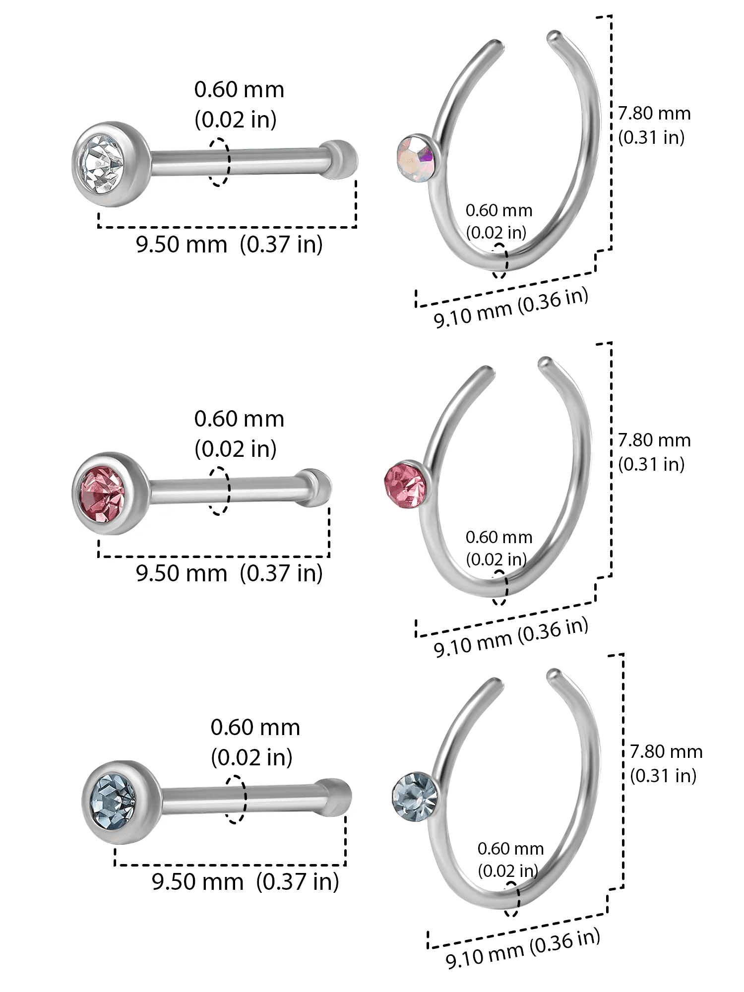 Enhance your nose piercing collection with the Body Jewelry Women’s Stainless Steel 22G Hoop and Stud Crystal Nose Rings, 6 Pack. This versatile set includes a combination of hoop and stud designs, each crafted from high-quality stainless steel to ensure durability and resistance to tarnish. The 22-gauge size offers a comfortable fit for most nostril piercings, making them suitable for daily wear. Each piece is adorned with sparkling crystals, adding a touch of elegance and shine to your look. Whether you’re dressing up for a special occasion or adding a subtle sparkle to your everyday ensemble, this set provides multiple options to suit your style. The variety of designs allows for easy mixing and matching, giving you the flexibility to change your look effortlessly. Ideal for those seeking both quality and variety, this 6-pack is a valuable addition to any jewelry collection. It also makes a thoughtful gift for friends or loved ones who appreciate stylish and versatile body jewelry.