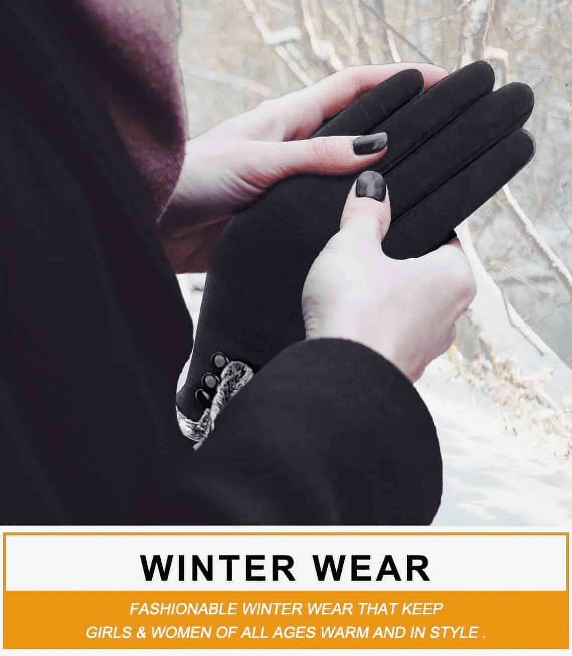 ●Super Soft & Warm Material: This classic winter gloves are made of high-quality non-inverted velvet, which is a breathable and soft material, and we specifically choose dense and soft fleece as lining, that’s why our gloves not only keep your hands warm, yet thin and comfortable to tuck in your coat pocket or purse with no problems.