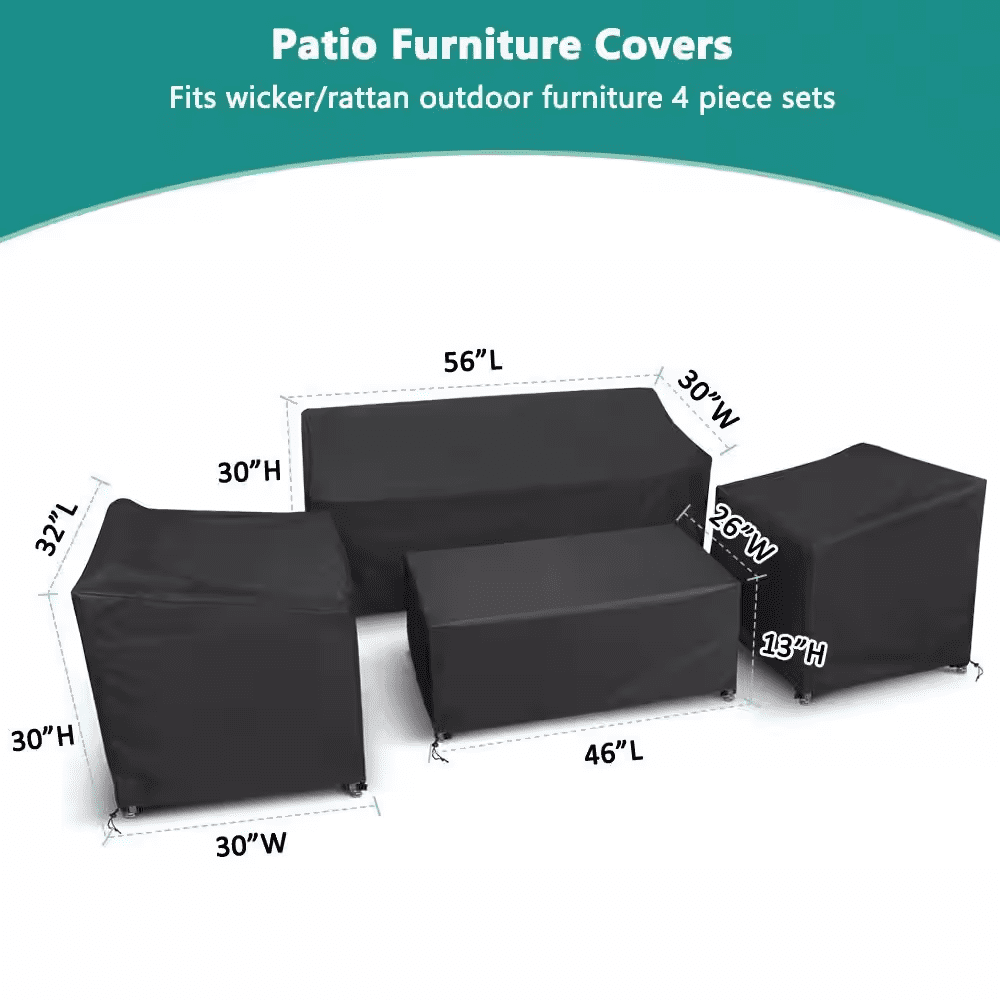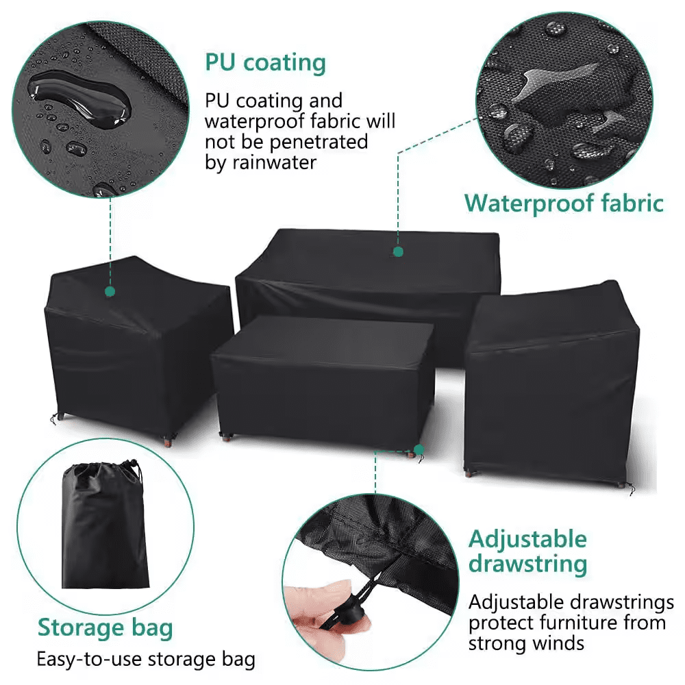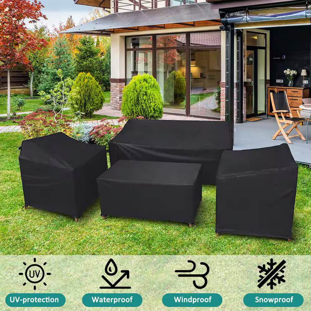 This durable 4-piece set is designed to protect your valuable rattan conversation set from harsh sunlight, rain, dust, and debris. Crafted from a 420D oxford fabric with a PU coating, the covers are fully waterproof, tear-resistant, and offer reliable UV protection. The secure buckle straps and bottom drawcord ensure a snug, windproof fit for your sofa, coffee table, and armchairs. Enjoy peace of mind and extend the life of your patio furniture through every season.