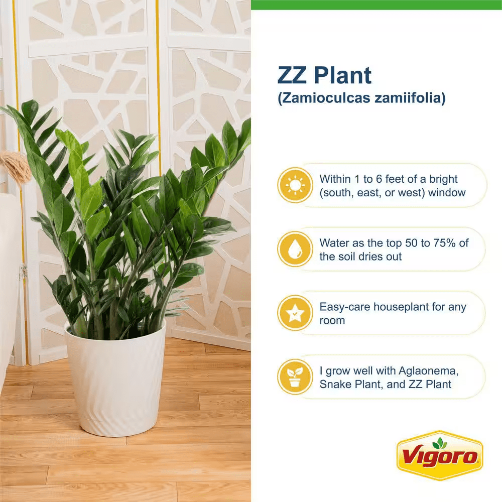 Enhance your interior space with this ZZ Plant. It comes with a ceramic pot for convenience. Great for homes or offices, this specially grown plant offers unique growing patterns and dark green foliage, creating decorative charm.